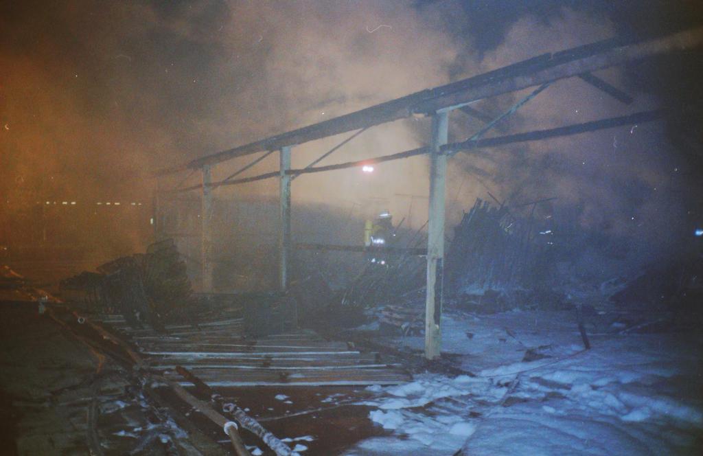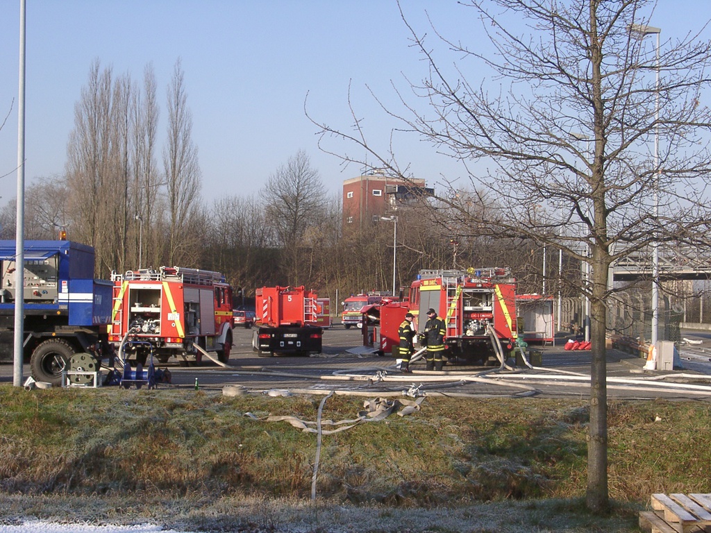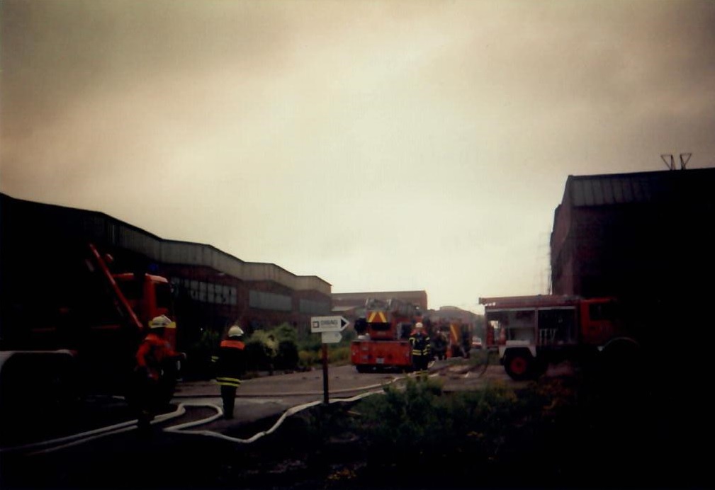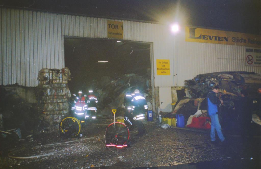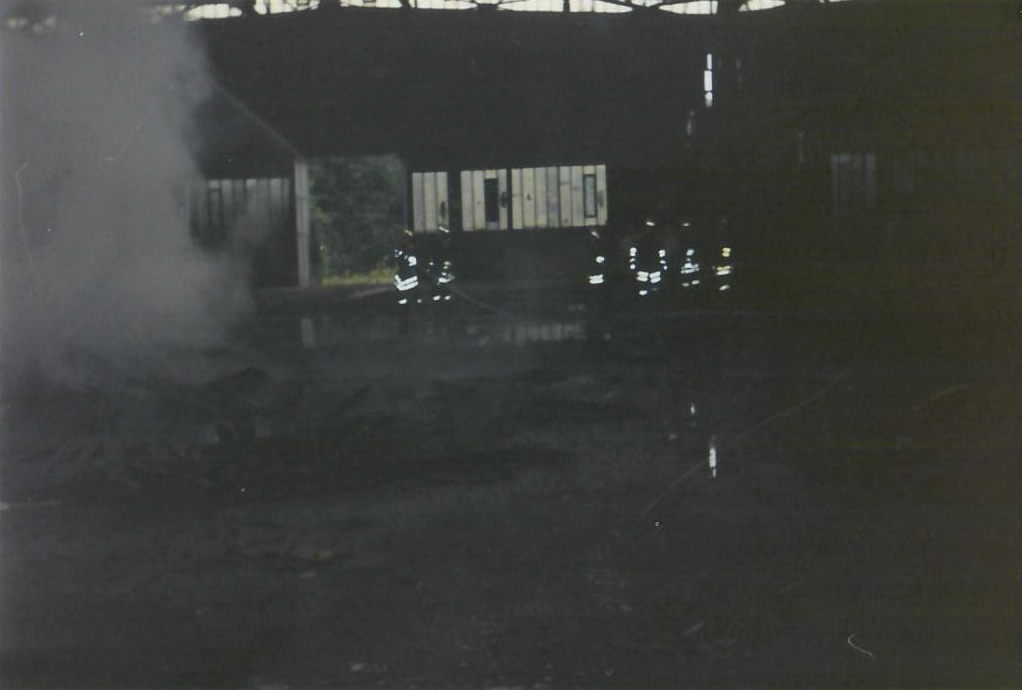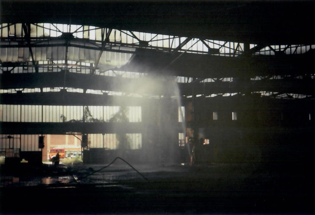 Kurz vor 02:00 Uhr nachts war die Feuermeldung bei der Berufsfeuerwehr aufgelaufen. Zuerst am Brandort war der Löschzug der Berufsfeuerwehr mit 13 Mann Besatzung. Nach und nach trafen dann auch sämtliche Freiwilligen Wehren der Stadt, darunter auch die Werkfeuerwehr Schoeller, an der Weidenstraße ein. Vom Mittelteil der Halle fraßen sich die Flammen, die teilweise bis zu 30 Meter hoch in die Luft ragten und den Himmel über der Wüste rot färbten, in den Gebäudeteil, der an der Schreberstraße liegt. Rund 20 Minuten nach Ausbruch des Feuers stand die Hälfte des alten Gebäudes in Flammen. Schwierigkeiten gab es mit der Wasserversorgung. So konnten einzelne Hydranten noch nicht einmal mit einer Spitzhacke geöffnet werden. Der Brand wurde nach Angaben von Einsatzleiter Schweppe durch 80 Einsatzkräfte mit zeitweise 20 C-Rohren und drei Wasserwerfern bekämpft. Die Hauptlöscharbeiten waren gegen 05:00 Uhr beendet und es folgten zahlreiche Nachlöscharbeiten, um auch die letzten Glutnester zu löschen. Das Ergebnis dieses Brandes, die 7000m² große Lagerhalle wurde komplett zerstört.