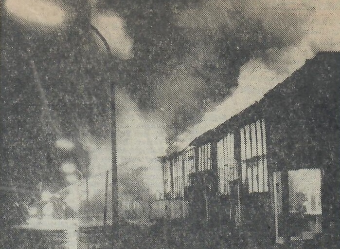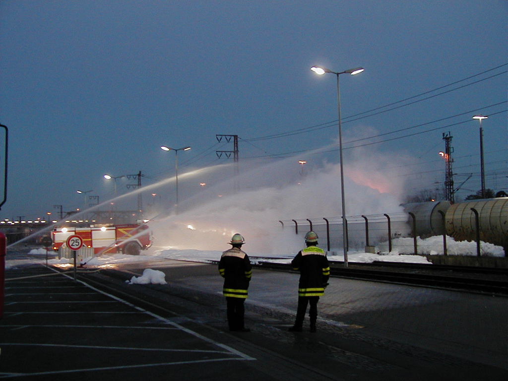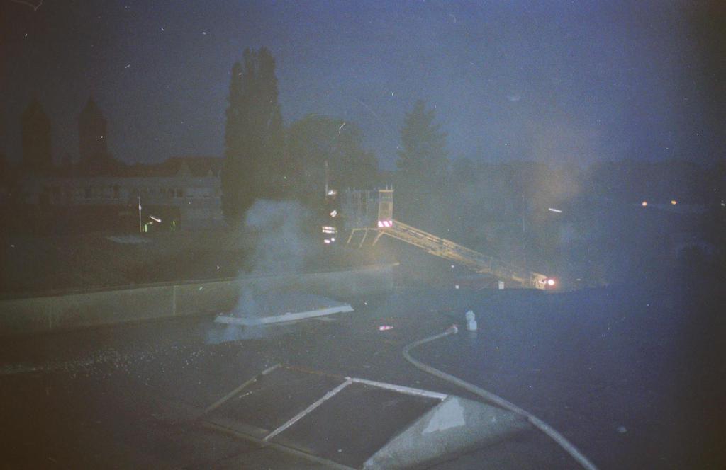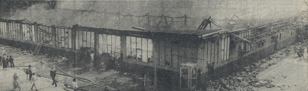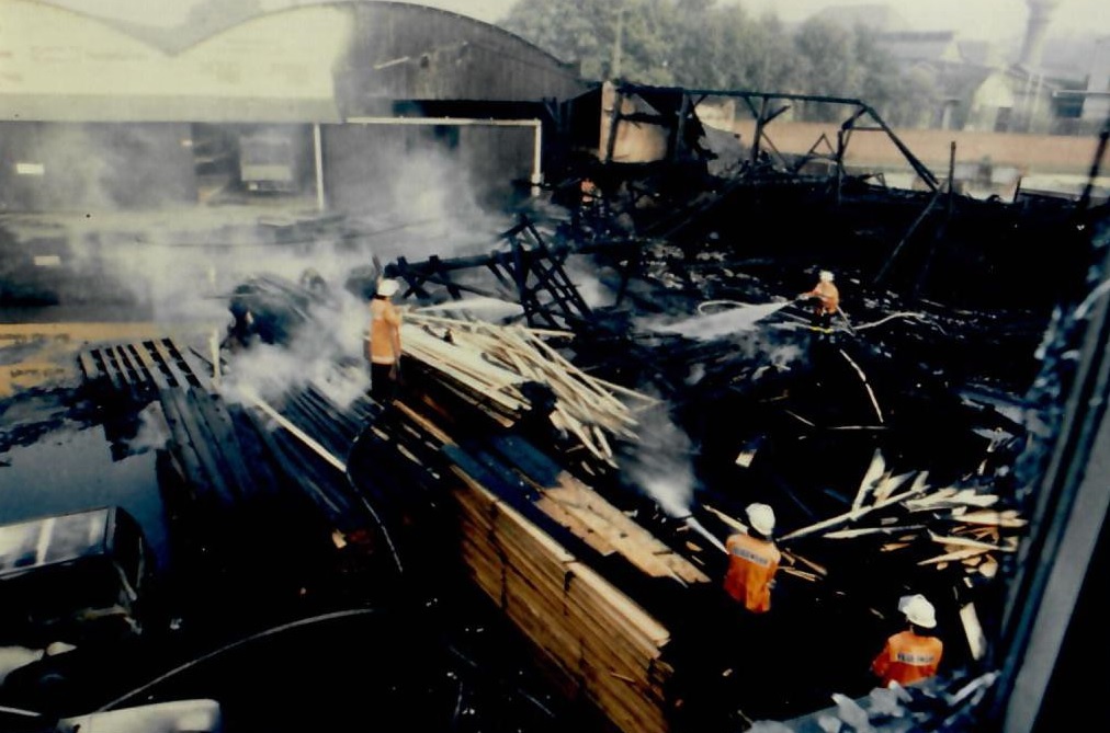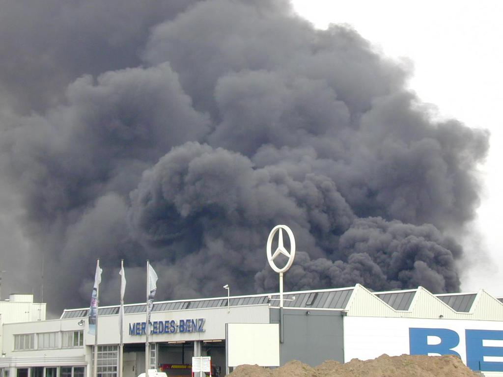 Kurz vor 02:00 Uhr nachts war die Feuermeldung bei der Berufsfeuerwehr aufgelaufen. Zuerst am Brandort war der Löschzug der Berufsfeuerwehr mit 13 Mann Besatzung. Nach und nach trafen dann auch sämtliche Freiwilligen Wehren der Stadt, darunter auch die Werkfeuerwehr Schoeller, an der Weidenstraße ein. Vom Mittelteil der Halle fraßen sich die Flammen, die teilweise bis zu 30 Meter hoch in die Luft ragten und den Himmel über der Wüste rot färbten, in den Gebäudeteil, der an der Schreberstraße liegt. Rund 20 Minuten nach Ausbruch des Feuers stand die Hälfte des alten Gebäudes in Flammen. Schwierigkeiten gab es mit der Wasserversorgung. So konnten einzelne Hydranten noch nicht einmal mit einer Spitzhacke geöffnet werden. Der Brand wurde nach Angaben von Einsatzleiter Schweppe durch 80 Einsatzkräfte mit zeitweise 20 C-Rohren und drei Wasserwerfern bekämpft. Die Hauptlöscharbeiten waren gegen 05:00 Uhr beendet und es folgten zahlreiche Nachlöscharbeiten, um auch die letzten Glutnester zu löschen. Das Ergebnis dieses Brandes, die 7000m² große Lagerhalle wurde komplett zerstört.