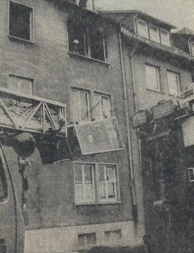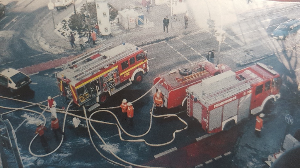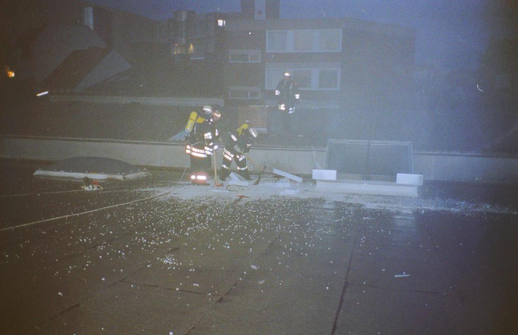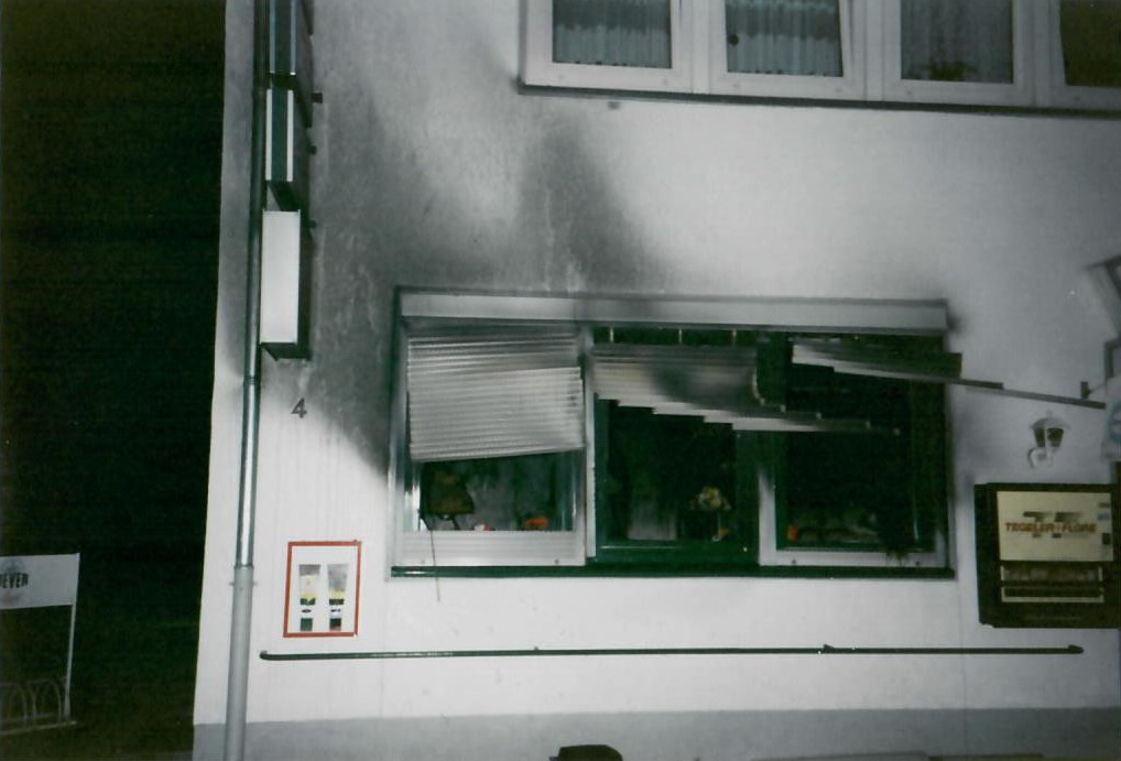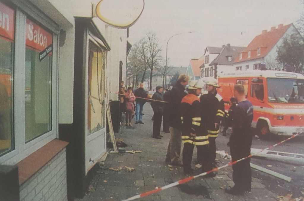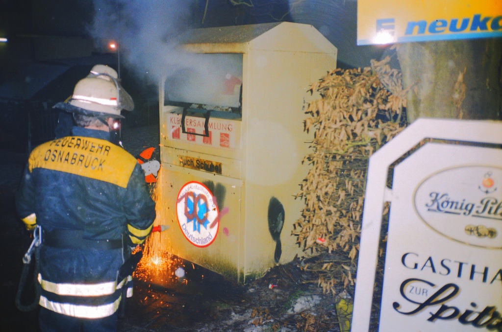 Die Feuerwehr wurde um 3:47 Uhr alarmiert. Anwohner hatten in dem Haus an der Thomasburgstraße eine Explosion gehört und dann eine Stichflamme gesehen. Schnell eilten die Einsatzkräfte der Berufsfeuerwehr Osnabrück und der freiwilligen Feuerwehr Schinkel zur Einsatzstelle. Die Wohnungstür wurde durch die Feuerwehr gewaltsam geöffnet, um so schnell zu dem in der Wohnung liegenden Klaus G. zu gelangen. Aus der brennenden und verqualmten Wohnung retteten die Einsatzkräfte den Schwerverletzten. In den anderen Wohnungen des Hauses waren zum Zeitpunkt der Explosion keine anderen Mieter. Um ganz sicher zu gehen, brachen die Einsatzkräfte die andere Dachgeschosswohnung auch auf. Die Löscharbeiten in den beiden Räumen und auf dem Dachboden waren gegen 4:36 Uhr beendet. Unklar ist deshalb für die Feuerwehr, warum gegen 6 Uhr der Dachstuhl zum zweiten Mal Feuer fing. Wieder rückten Berufs- und Freiwillige Feuerwehr zur Thomasburgstraße aus, diesmal bis 9 Uhr. Nach ersten Schätzungen der Kriminalpolizei entstand ein Sachschaden von 60.000 bis 80.000 DM.