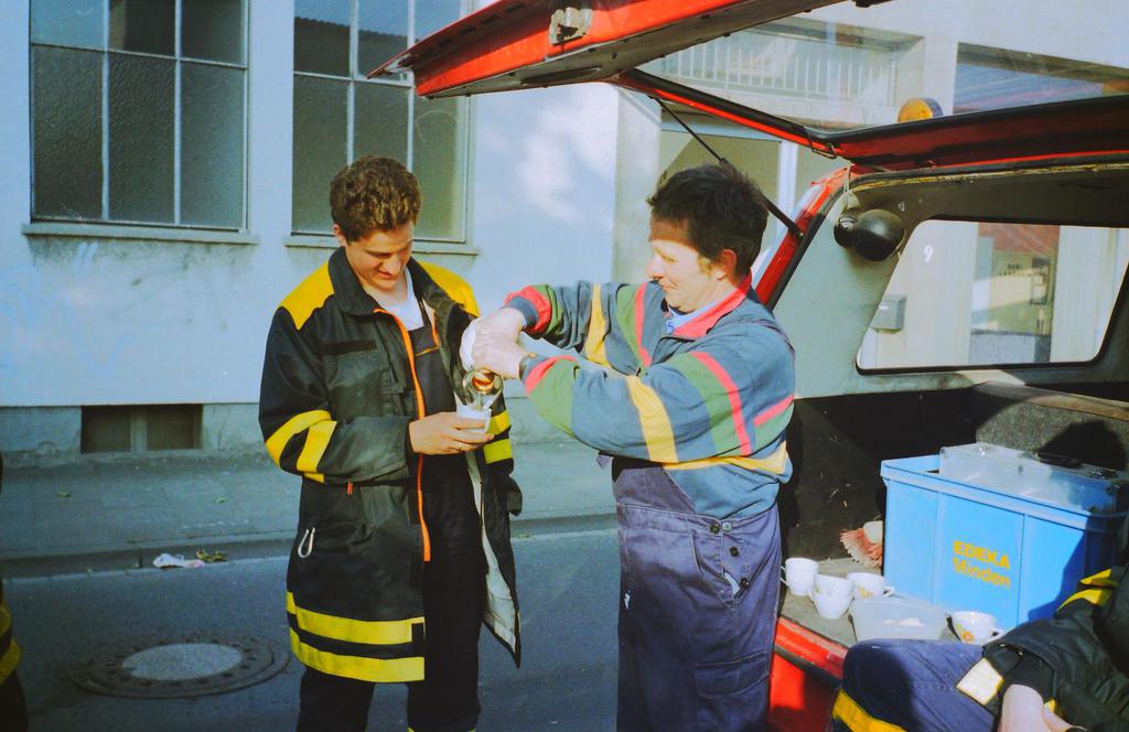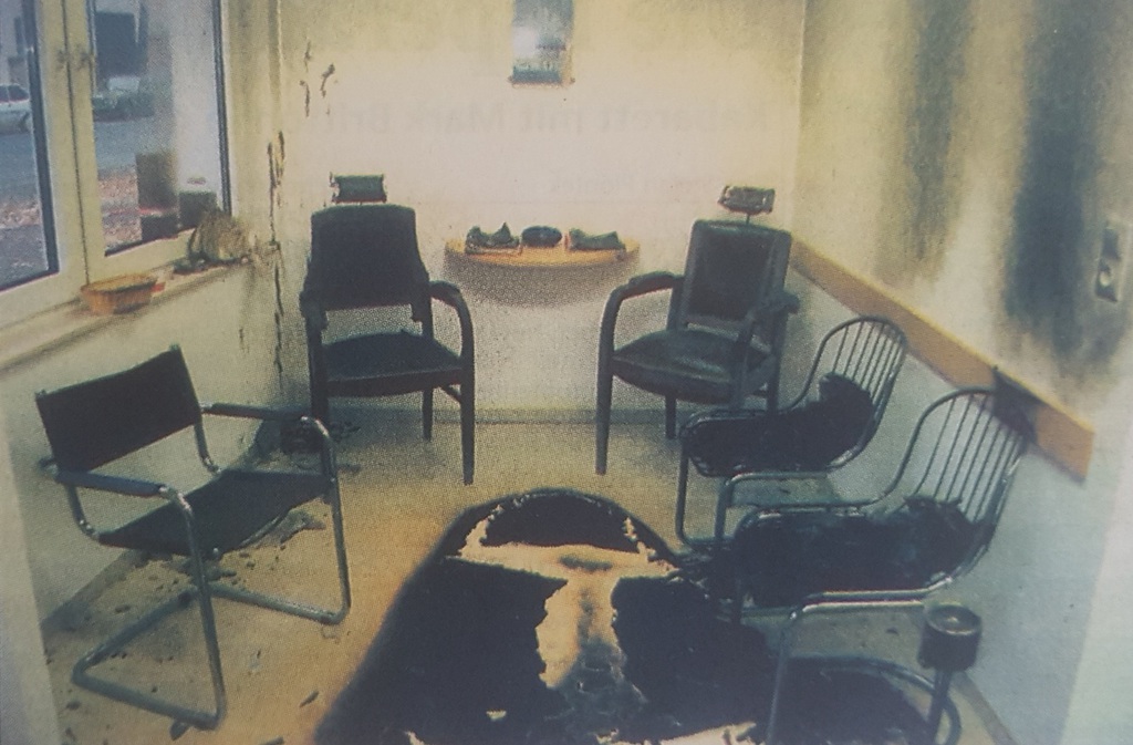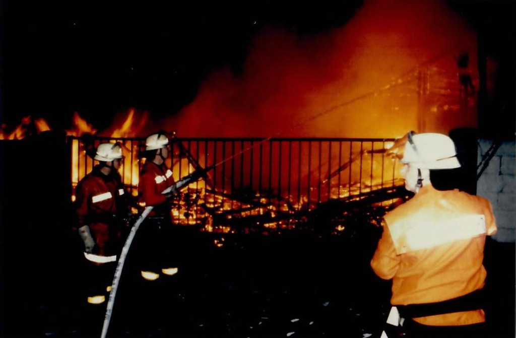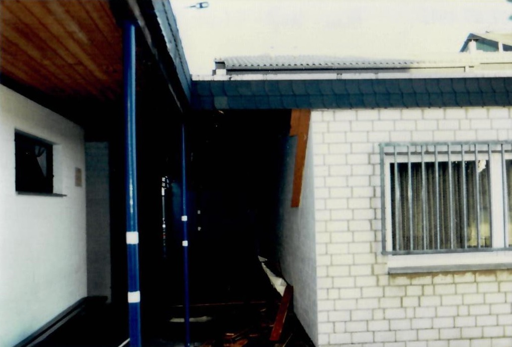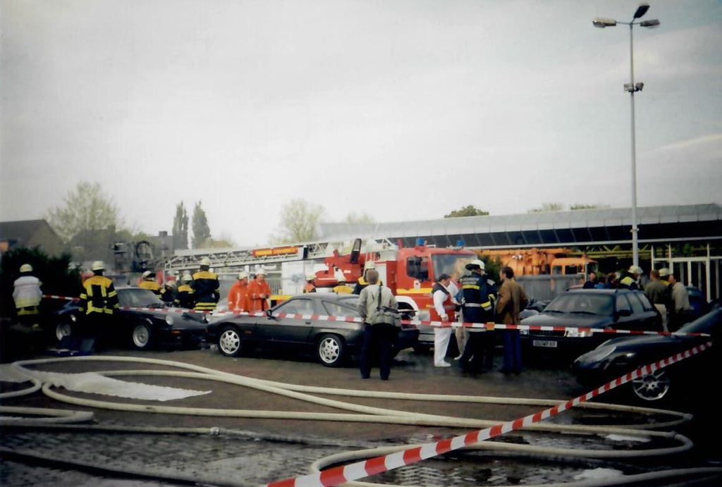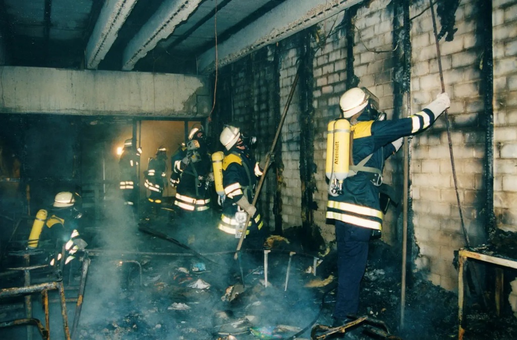 Die Feuerwehr wurde um 3:47 Uhr alarmiert. Anwohner hatten in dem Haus an der Thomasburgstraße eine Explosion gehört und dann eine Stichflamme gesehen. Schnell eilten die Einsatzkräfte der Berufsfeuerwehr Osnabrück und der freiwilligen Feuerwehr Schinkel zur Einsatzstelle. Die Wohnungstür wurde durch die Feuerwehr gewaltsam geöffnet, um so schnell zu dem in der Wohnung liegenden Klaus G. zu gelangen. Aus der brennenden und verqualmten Wohnung retteten die Einsatzkräfte den Schwerverletzten. In den anderen Wohnungen des Hauses waren zum Zeitpunkt der Explosion keine anderen Mieter. Um ganz sicher zu gehen, brachen die Einsatzkräfte die andere Dachgeschosswohnung auch auf. Die Löscharbeiten in den beiden Räumen und auf dem Dachboden waren gegen 4:36 Uhr beendet. Unklar ist deshalb für die Feuerwehr, warum gegen 6 Uhr der Dachstuhl zum zweiten Mal Feuer fing. Wieder rückten Berufs- und Freiwillige Feuerwehr zur Thomasburgstraße aus, diesmal bis 9 Uhr. Nach ersten Schätzungen der Kriminalpolizei entstand ein Sachschaden von 60.000 bis 80.000 DM.