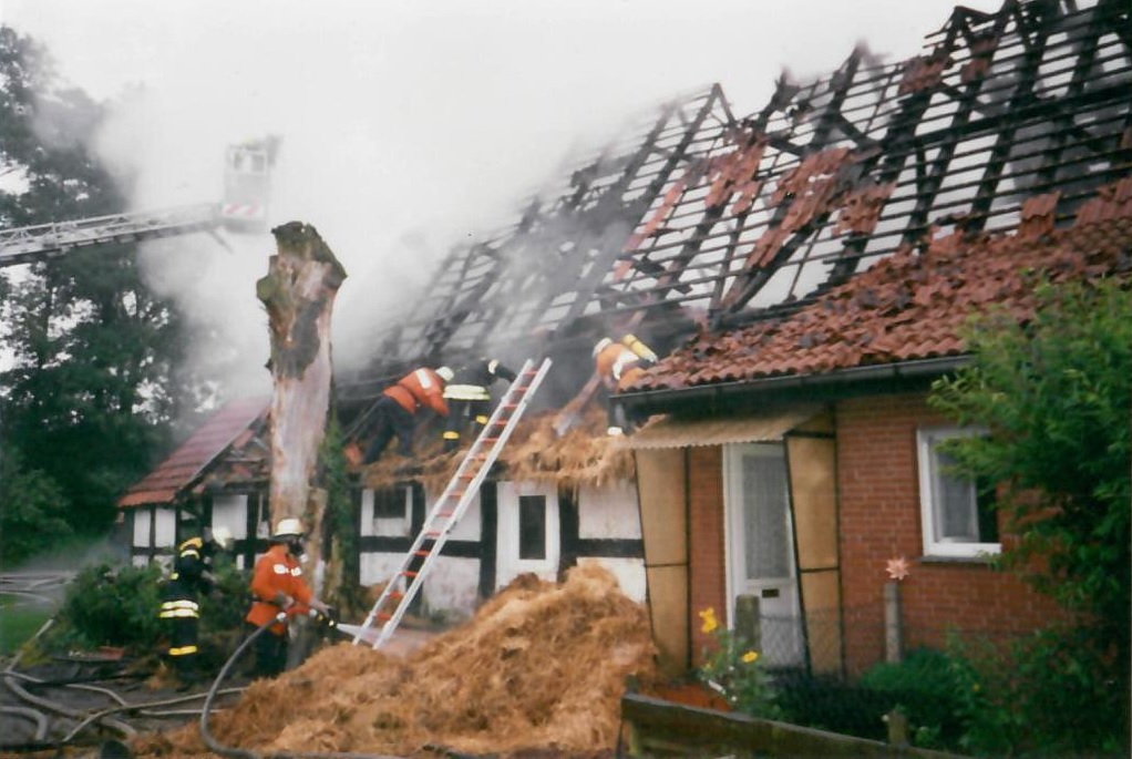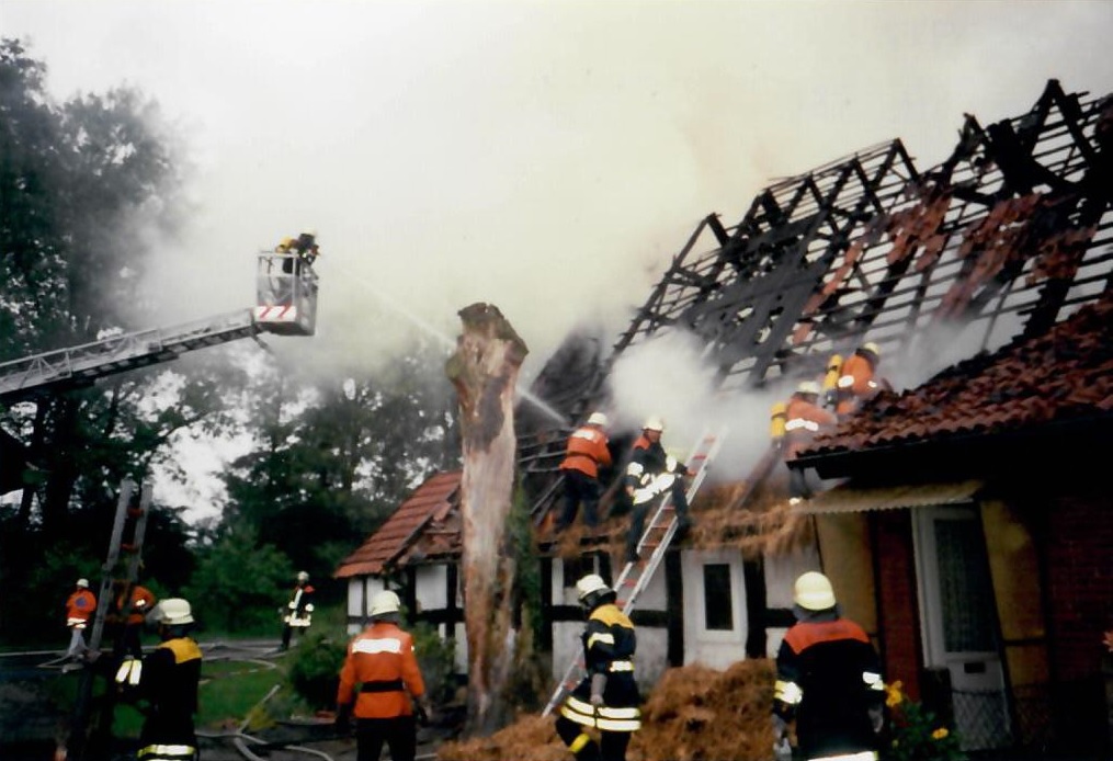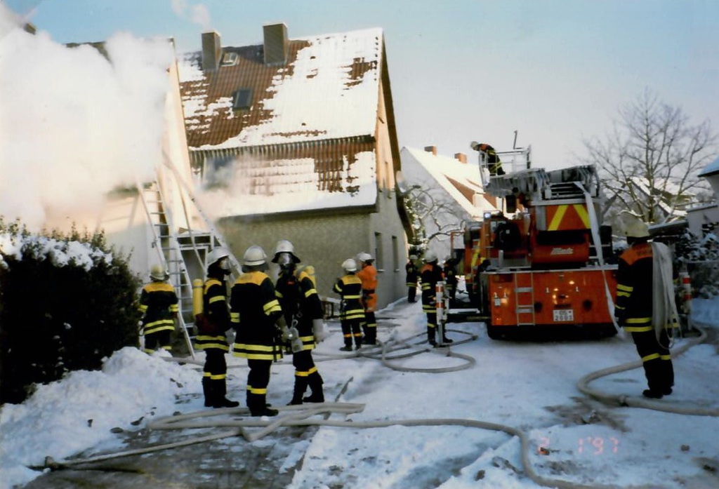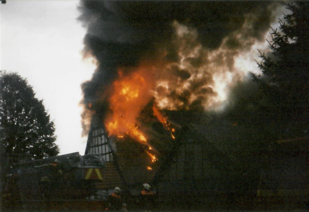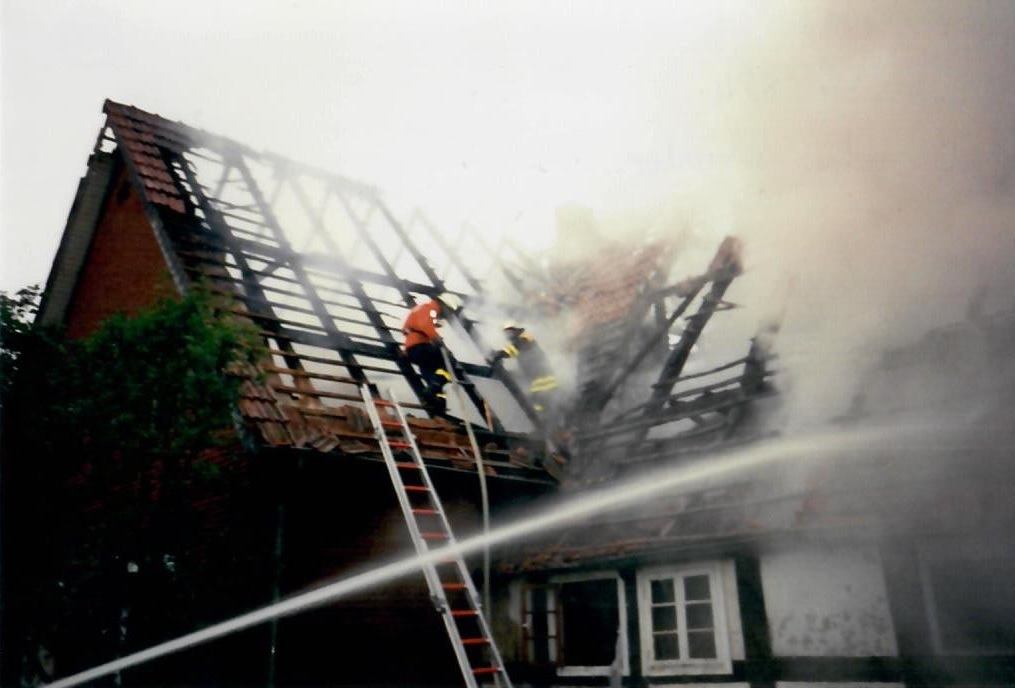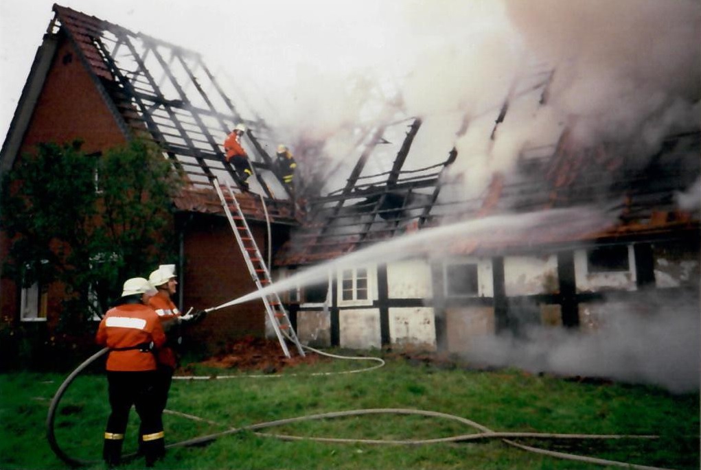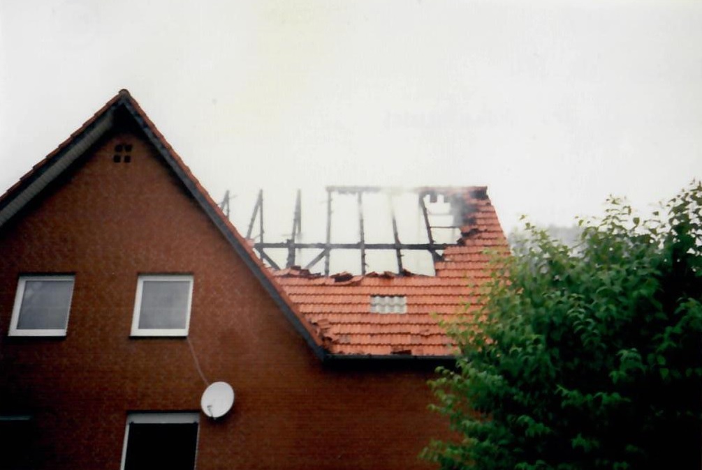 Aus noch ungeklärter Ursache brach im Dachgeschoss eines Hauses an der Backhausbreite ein Brand aus. Allein der Gebäudeschaden beträgt schätzungsweise 60.000 DM. Kurz nach Mitternacht war ein Zimmerbrand an der Backhausbreite gemeldet worden, der sich innerhalb kürzester Zeit zum Dachstuhlbrand ausgeweitet hatte. 20 Einsatzkräfte waren mit sechs Fahrzeugen der Berufsfeuerwehr und zwei Fahrzeugen der Freiwilligen Feuerwehr Schinkel ausgerückt um den Brand zu bekämpfen. Gegen 3:30 Uhr war der Einsatz beendet.