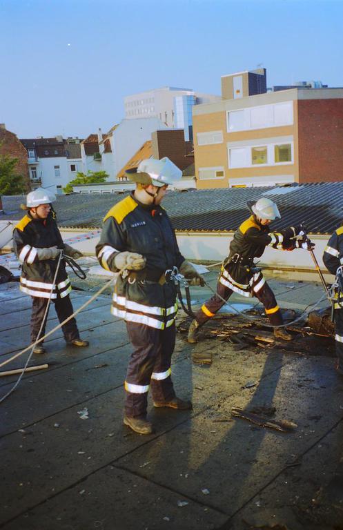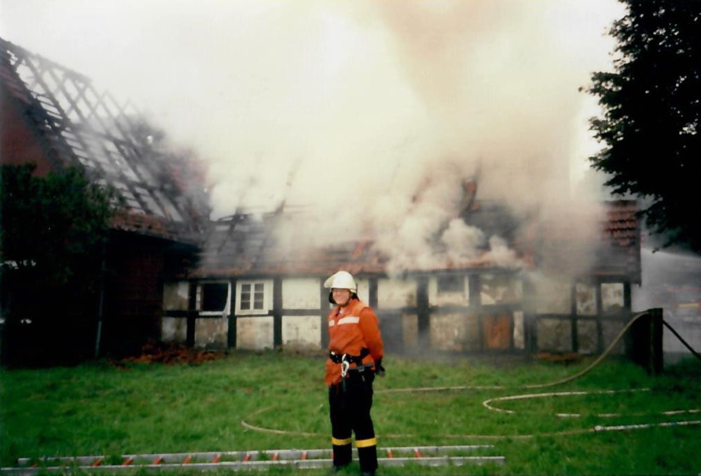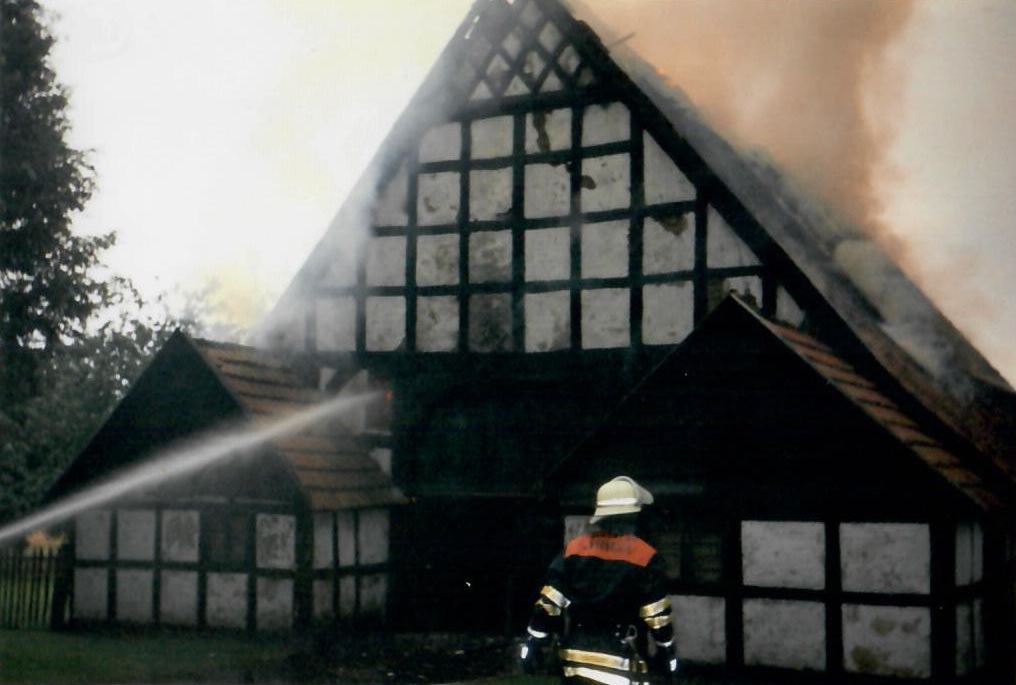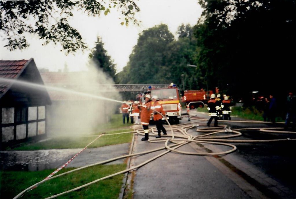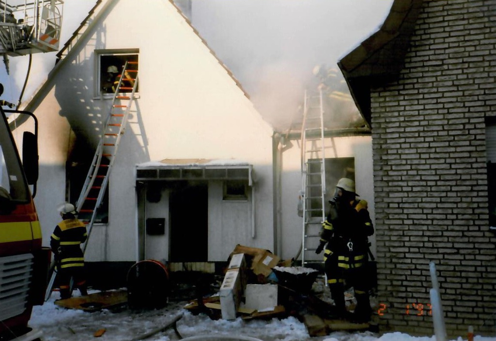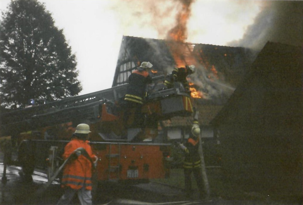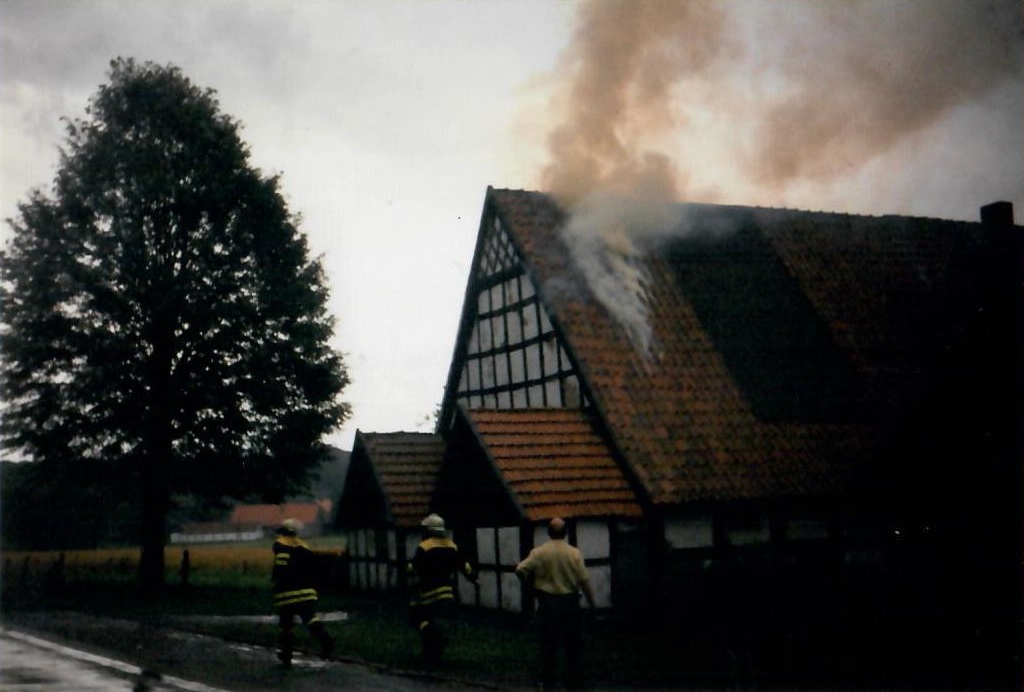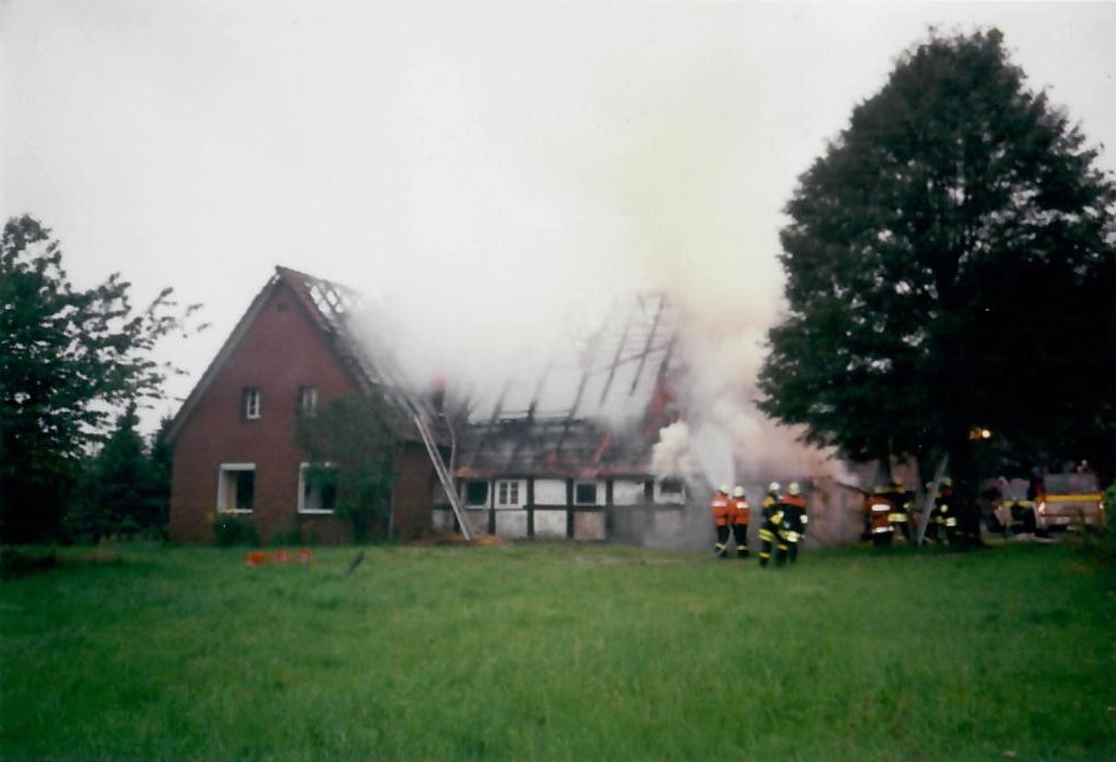 Aus noch ungeklärter Ursache brach im Dachgeschoss eines Hauses an der Backhausbreite ein Brand aus. Allein der Gebäudeschaden beträgt schätzungsweise 60.000 DM. Kurz nach Mitternacht war ein Zimmerbrand an der Backhausbreite gemeldet worden, der sich innerhalb kürzester Zeit zum Dachstuhlbrand ausgeweitet hatte. 20 Einsatzkräfte waren mit sechs Fahrzeugen der Berufsfeuerwehr und zwei Fahrzeugen der Freiwilligen Feuerwehr Schinkel ausgerückt um den Brand zu bekämpfen. Gegen 3:30 Uhr war der Einsatz beendet.