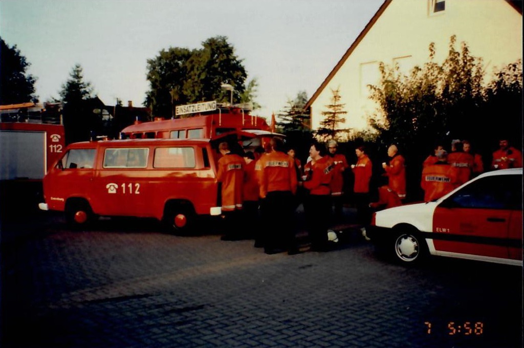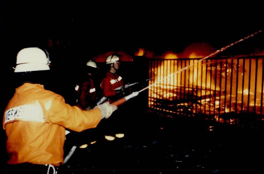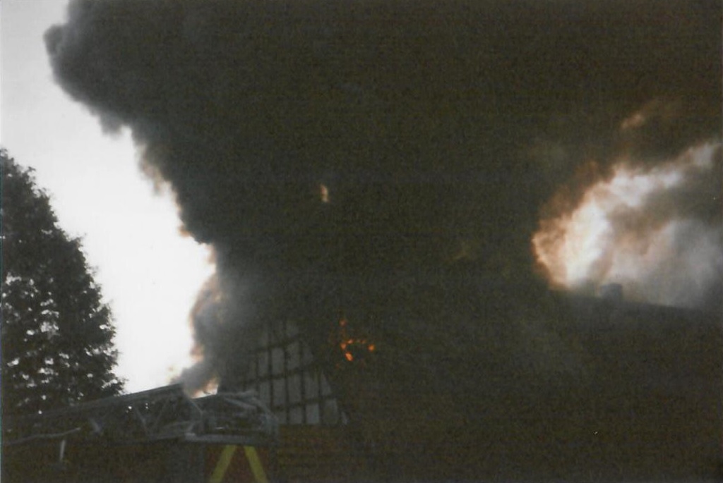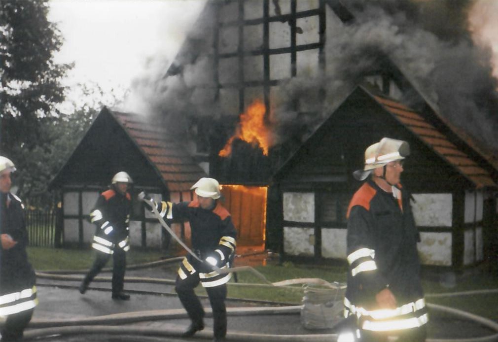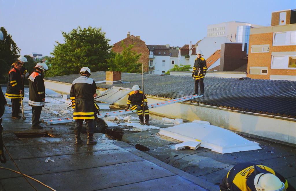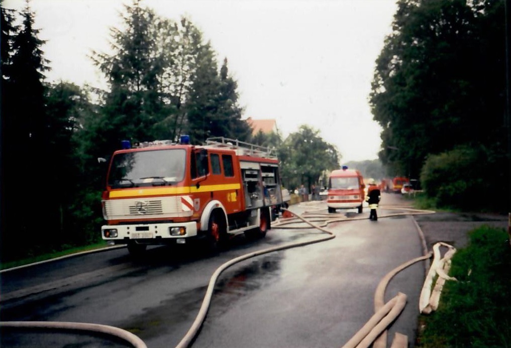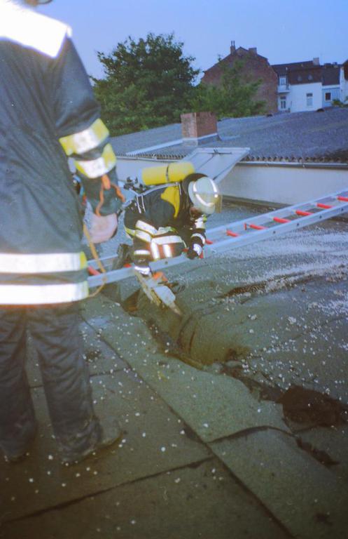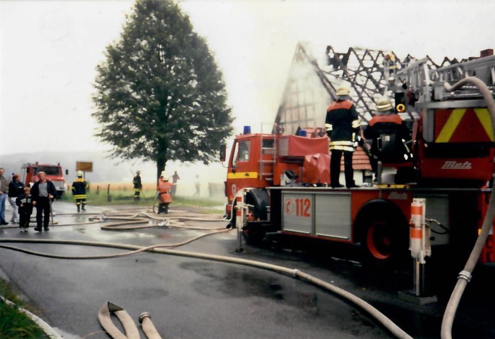 Aus noch ungeklärter Ursache brach im Dachgeschoss eines Hauses an der Backhausbreite ein Brand aus. Allein der Gebäudeschaden beträgt schätzungsweise 60.000 DM. Kurz nach Mitternacht war ein Zimmerbrand an der Backhausbreite gemeldet worden, der sich innerhalb kürzester Zeit zum Dachstuhlbrand ausgeweitet hatte. 20 Einsatzkräfte waren mit sechs Fahrzeugen der Berufsfeuerwehr und zwei Fahrzeugen der Freiwilligen Feuerwehr Schinkel ausgerückt um den Brand zu bekämpfen. Gegen 3:30 Uhr war der Einsatz beendet.