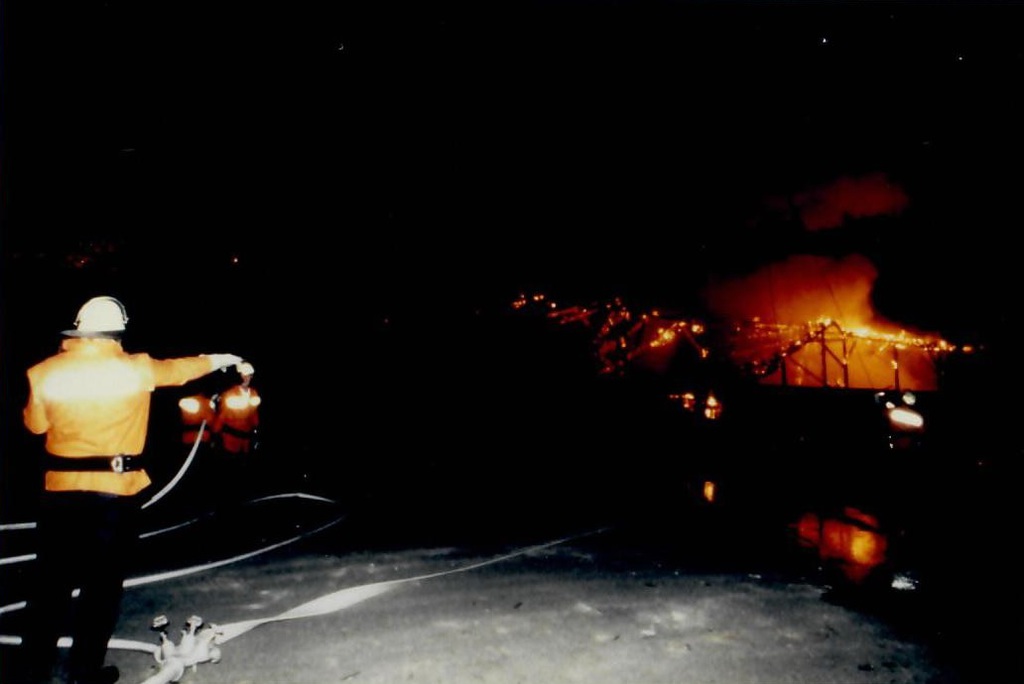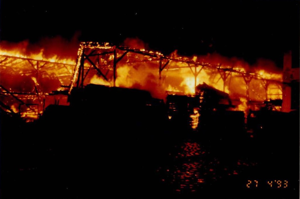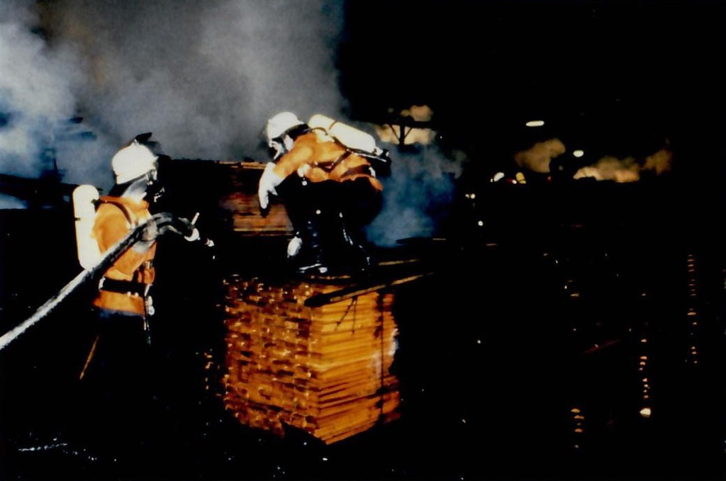 Freitagabend, kurz vor 23 Uhr: Ein Arbeiter der Firma Kämmerer kommt am Werk 1 (direkt an der Hase) vorbei. In den Gebäuden mit der wertvollen Papiermaschine und dem Papierrollenlager ist alles ruhig. Drei Minuten später sieht der Mann in der Verladehalle eine fast zwei Meter hohe Feuersäule. Der Arbeiter schlägt Alarm, der um 22:51 die Leitstelle der Feuerwehr erreicht. Eine Minute später rückt der erste Löschzug aus, Richtung Kämmerer. Schon auf der kurzen Fahrt zum Hafen sehen die Männer der Feuerwehr den rot gefärbten Himmel über dem Hafengebiet. Das Feuer im Papierrollenlager hatte sich in Sekundenschnelle ausgebreitet. Die ganze Halle, 80 Meter lang und 25 Meter breit, steht lichterloh in Flammen. Ebenso die Verladehalle (25x25 Meter). Die Wehrmänner sehen eine gleißend gelbe „Wand“ vor sich. Der Wind facht das Feuer immer mehr an, Funken stiegen durch die Luft, gefährden die anderen Fabrikgebäude. Die Leitstelle der Feuerwehr ruft alle freiwilligen Wehren der Stadt Osnabrück an den Brandort. Die ganze Nacht über kämpften die Wehrmänner gegen das Feuer von allen Seiten an. Als das Dach des Lagers einstürzte, wurde es noch schwieriger. Man kam nicht mehr an den Kern des Brandes heran. Wasserwerfer spritzten auf umliegende Gebäude und in die Luft, um die Funken zu löschen. Gegen 2 Uhr war die größte Gefahr vorbei. Das Feuer hatte sich nicht ausbreiten können. Auch noch am Samstag und Sonntag waren die Einsatzkräfte im Einsatz, um die letzten schwelenden Brandnester zu löschen.