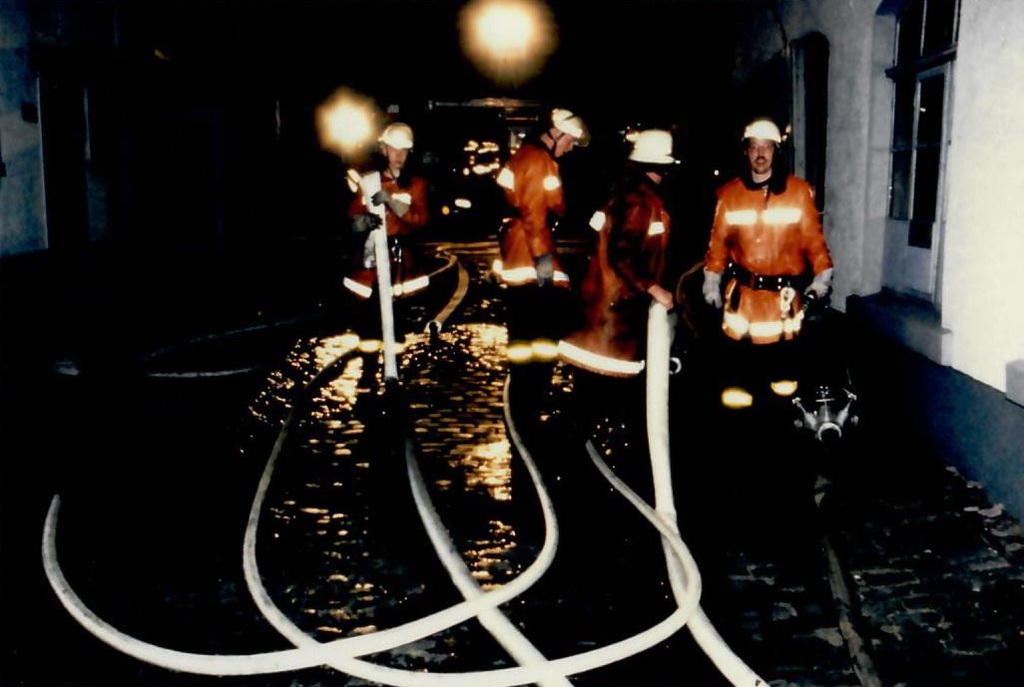 Rund 100 Einsatzkräfte der freiwilligen Feuerwehren und der Berufsfeuerwehr standen gestern pausenlos im Einsatz, um wenigstens die größten Schäden zu verhindern. Seit dem frühen Nachmittag wurde gepumpt und gepumpt, wobei es oft schwerfiel, die richtige Entscheidung über den nächsten Einsatz zu treffen. Die Erde hatte sich vollgesogen. Vor allem die Keller in Privathäusern waren die Einsatzorte der Feuerwehren.