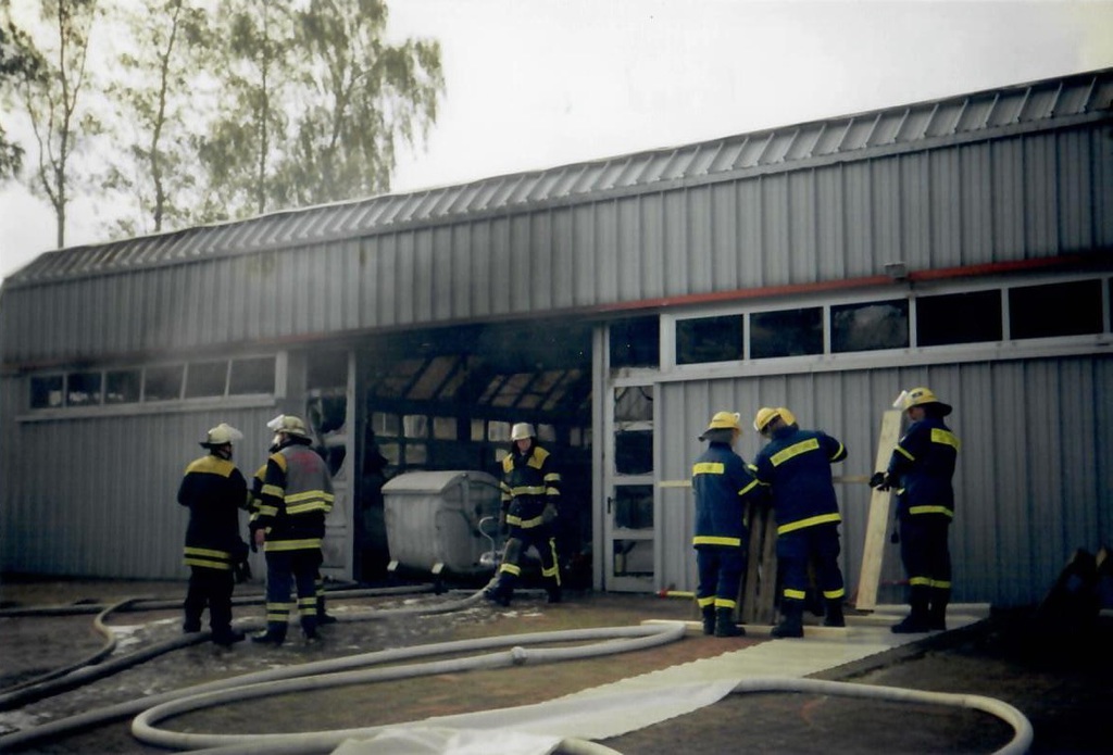 Vollkommen ausgebrannt ist gestern Vormittag ein Schweinestall an der Oststraße. Nach Angaben der Feuerwehr war der Brand durch Schweißarbeiten entfacht worden. Im Einsatz waren ein Löschzug der Berufsfeuerwehr und die Freiwillige Feuerwehr Schinkel. Die Feuerwehr beziffert den Sachschaden auf rund 15.000 DM.