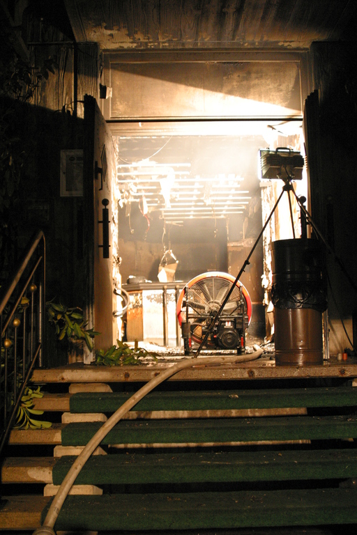 Wieder brannte es in einer Diskothek in der Baumstraße. In einem Zwischenraum wurde Unrat angezündet. Dadurch war einer Person der Fluchtweg über das Treppenhaus versperrt. Die Person wurde beruhigt und brauchte die Wohnung nicht zu verlassen. Das Feuer wurde mittels Schnellangriff gelöscht. Neben der FF Schinkel waren der Löschzug der Berufsfeuerwehr, zwei RTW, sowie drei Streifenwagen der Polizei im Einsatz.