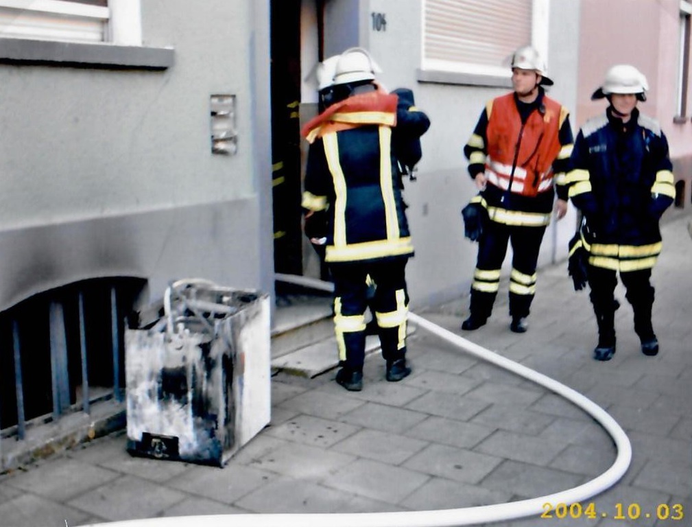 Auf einem Balkon kam es zu einem Feuer in einem kleinen Müllhaufen. Dieses Feuer griff auf die Balkonverkleidung aus Kunststoff über. Nach dem Eintreffen der FF Schinkel entschied der Fahrzeugführer des TLF, dass man das Feuer von außen über die Drehleiter der Berufsfeuerwehr bekämpfen wollte, da der Wohnungsinhaber nicht zu Hause war und keine unmittebare Gefahr für die Wohnung bestand. Die eingetroffene Funkstreifenbestzung der Polizei sah das anders und trat die Wohnungstür ein, wodurch ein großer Schaden verursacht wurde. Zum Ablöschen wurden ca. 10 Liter Wasser aus einer Kübelspritze vorgenommen.