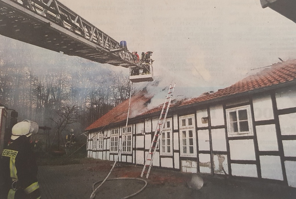 In einem unter Denkmalschutz stehenden Fachwerkhaus, welches ein Brasilianisches Restaurant beherbergte, war in den Mittagsstunden aus unerklärter Ursache ein Feuer ausgebrochen. Das Feuer breitete sich schnell vom Erdgeschoss auf den Dachstuhl aus. Beim Eintreffen der Berufsfeuerwehr Osnabrück brannte der Dachstuhl bereits in voller Ausdehnung. Nach dem Eintreffen der FF Schinkel und der FF Belm wurde ein massiver Löschangriff vorgenommen. Parallel dazu wurden mehrere Wasserversorgungen mit einer Gesamtlänge von ca. 3.700m aufgebaut. Hier kamen dann noch zusätzlich die FF Sutthausen und Neustadt zum Einsatz. Die anschließende Brandwache wurde von der FF Eversburg sichergestellt.