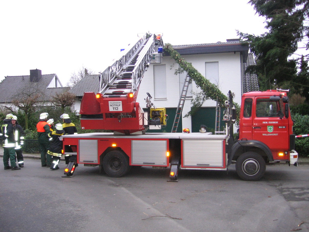 Auch heute musste die FF Schinkel wieder ausrücken, um Sturmeinsätze abzuarbeiten. Erst unterstützte eine TLF-Besatzung beim Abbau des Evakuierungszentrums an der Gesamtschule Schinkel Teile der SEG Rettung, danach wurden wieder Sturmeinsätze, die in der vergangenen Nacht nicht mehr abgearbeitet werden konnten, erledigt. Insgesamt kam es durch den Orkan "Kyrill" zu fast 80 Einsätzen für die FF Schinkel. |