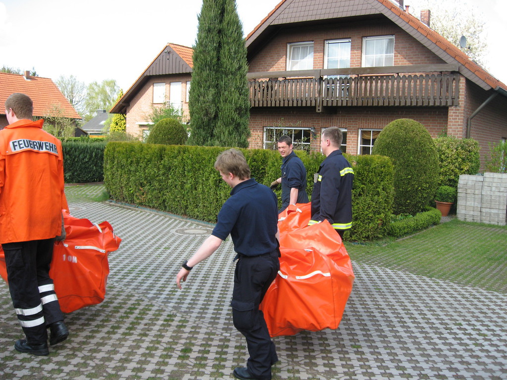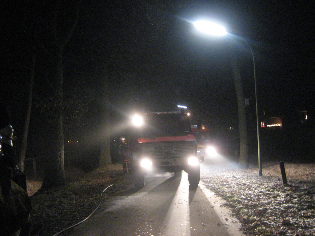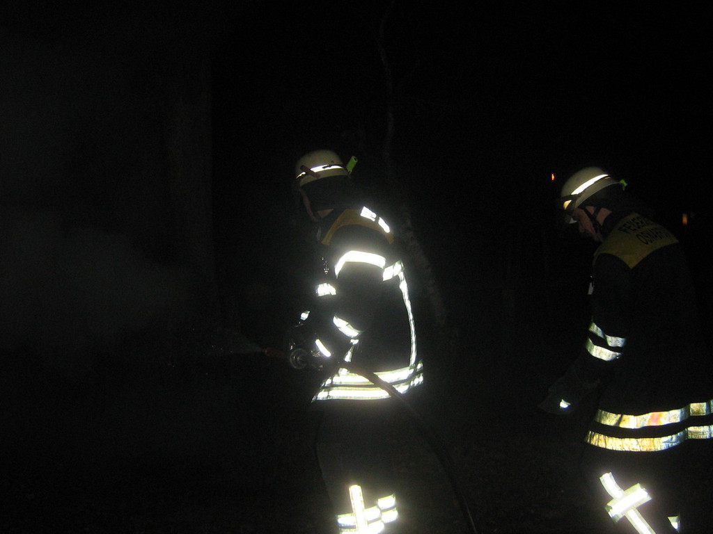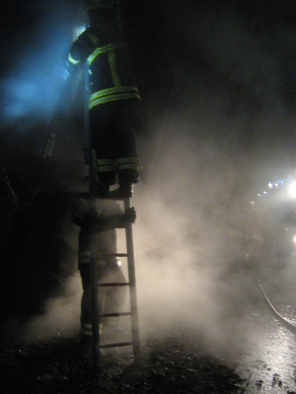 Kurzbericht: | Ein ca. 55m² großes Nebengebäude eines einzelnstehenden Hauses brannte komplett aus. Erschwert wurde der Einsatz dadurch, dass die Einsatzstelle ca. 150m von einer befestigten Straße weg liegt und es keine ausreichende Wasserversorgung in der Nähe gibt. Im Einsatz waren neben dem Löschzug der Berufsfeuerwehr und der FF Schinkel zwei Rettungswagen und ein Wechselladerfahrzeug mit 10000 l Wasser. Das Feuer wurde mit zwei C-Rohren und vier Trupps unter Atemschutz gelöscht. |