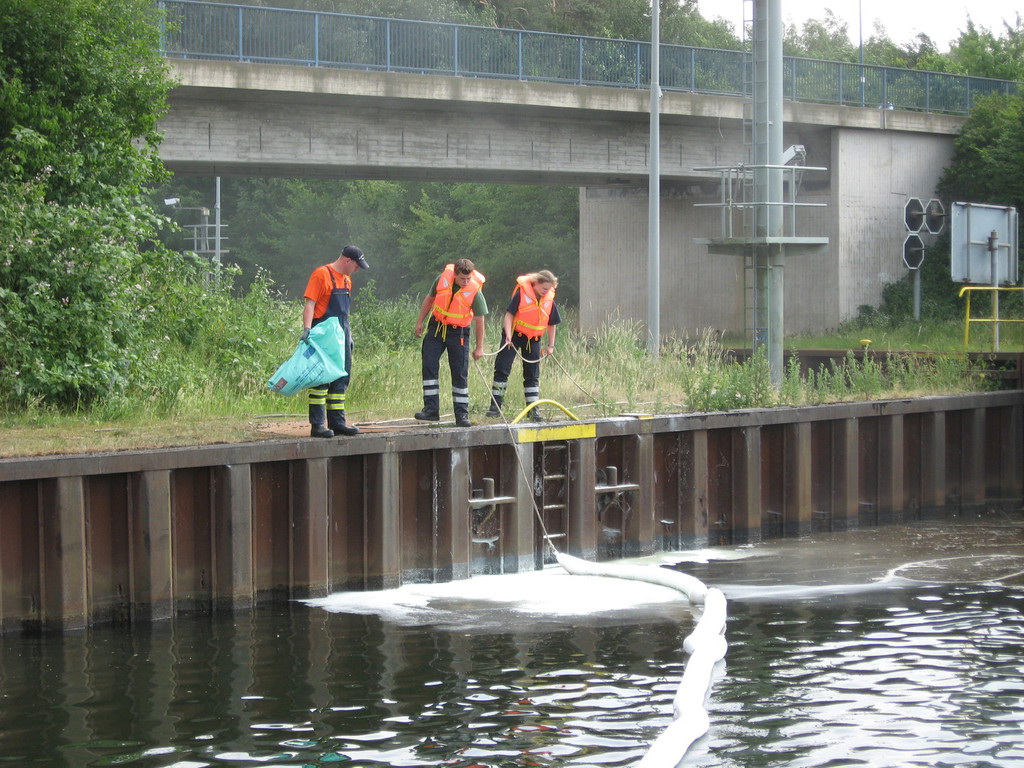 Kurzbericht: | Auf dem Stichkanal wurde mittels Ölsperren und Bindemittel ein Ölfilm entfernt. |