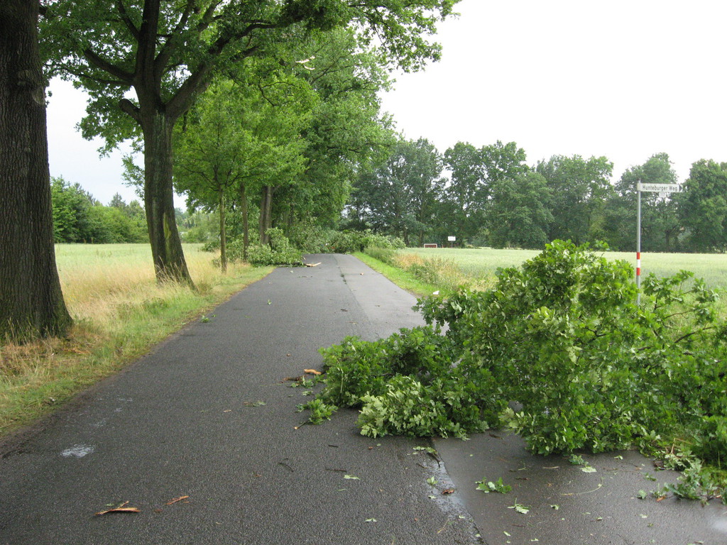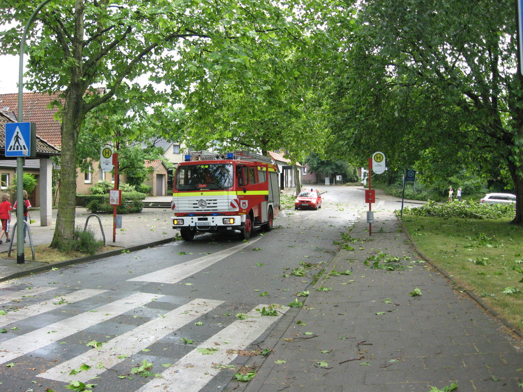 Ein starkes Gewitter sorgte für zahlreiche Einsätze der Berufsfeuerwehr, der FF Neustadt und der FF Schinkel. Der Schwerpunkt dabei lag im Widukindland, wo eine kleine Windhose erhebliche Sturmschäden anrichtete. |