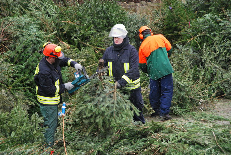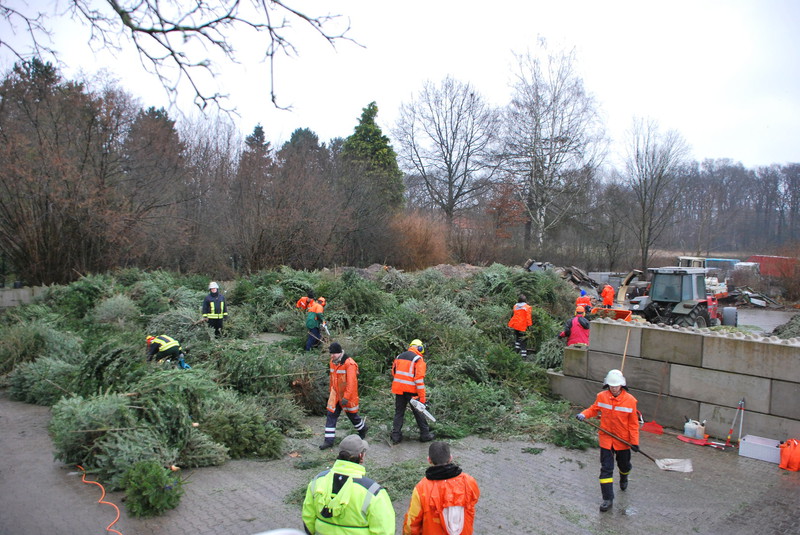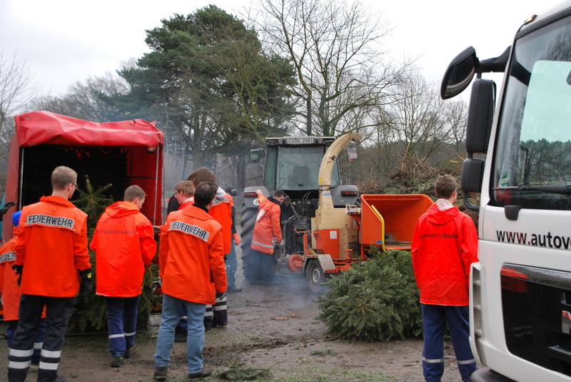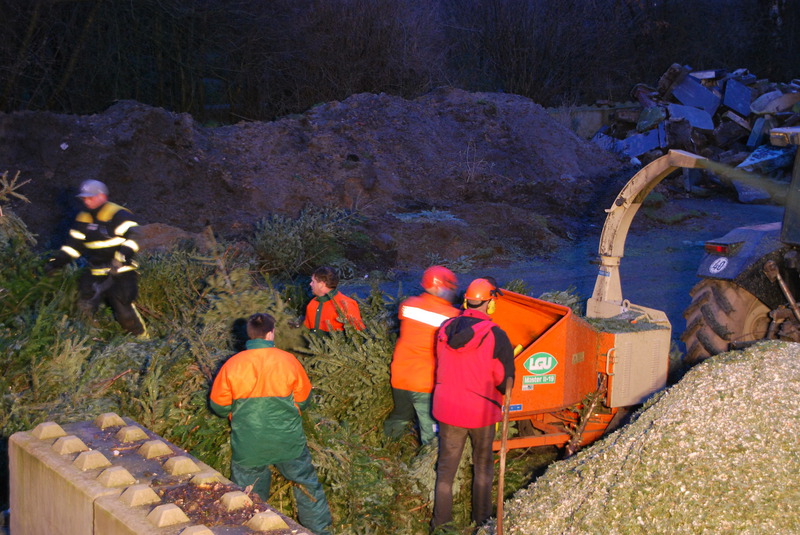 Das Highlight kam aber für alle Beteiligten, am Samstag nach den Heiligen drei Königen. An diesem Samstag werden, wie jedes Jahr, durch die Feuerwehren, die innerhalb der Stadt Osnabrück ebenfalls eine Weihnachtsbaumsammelaktion anbieten, die ausgedienten Bäume abgeholt. Diese Bäume werden dann anschließend geschreddert und somit fachgerecht entsorgt.