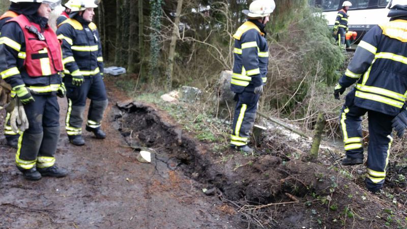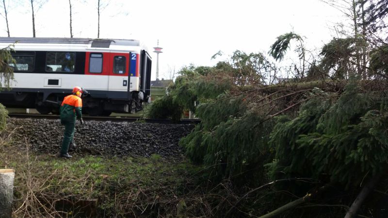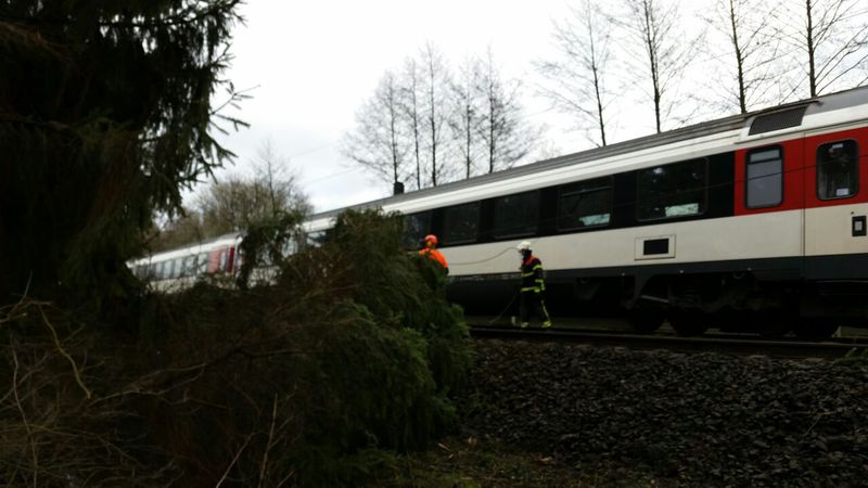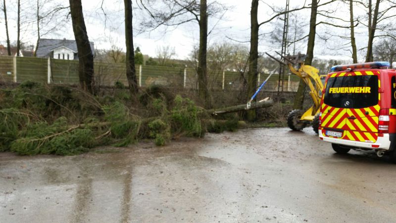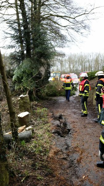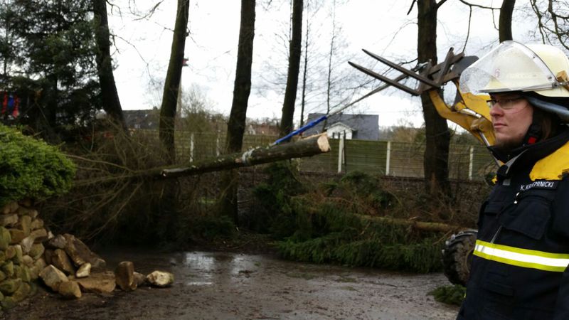 Nach dem gemeinsamen Essen ging es dann noch einmal auf die Straße. Es wollten immer noch einige Bäume eingesammelt werden. Zu den starken Sturmböen kam jetzt aber noch mäßiger bis starker Regen dazu. Das machte den Leuten die Arbeit wirklich schwer. Aber gegen Nachmittag waren dann, bis auf wenige Ausnahmen, alle Bäume eingesammelt.
