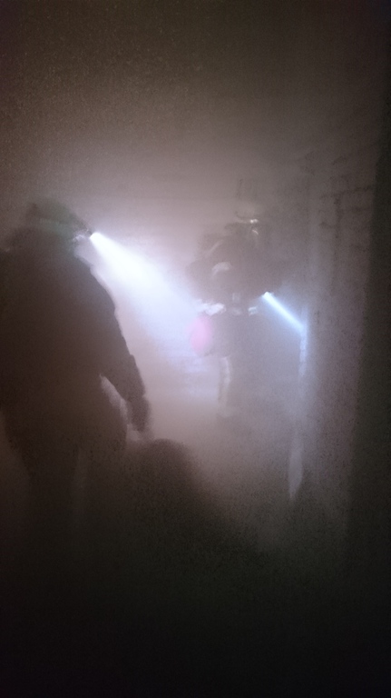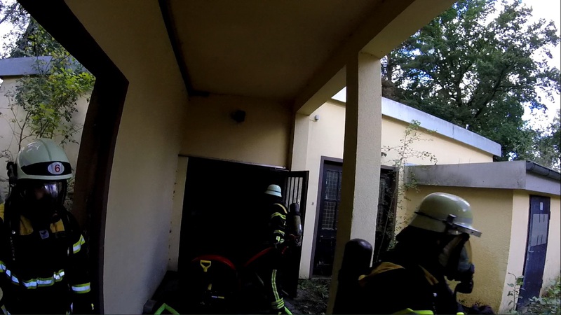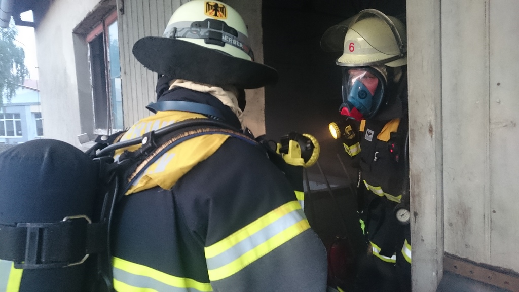 Nach knapp 2,5 Stunden ging es dann an die Praxis. Die zuvor erarbeiteten Punkte aus der Theorie wurden nun in der Praxis umgesetzt. In einem im Vorfeld vorbereitetem Gebäude konnten wir umfassend bei unterschiedlichen Übungslagen das zuvor erarbeitete Wissen umsetzen. So wurden neben dem Absuchen von Räumen oder der Vornahme von verschiedenen Strahlrohren auch die Verhaltensweisen im Innenangriff und der Ablauf bei besonderen Situationen geübt. So konnte jeder Teilnehmer auch einmal die unterschiedlichen Merkmale von Rauchschichten und –arten versuchen zu erkennen und z.B. die Wirkung von Wasserdampf in Brandräumen austesten.