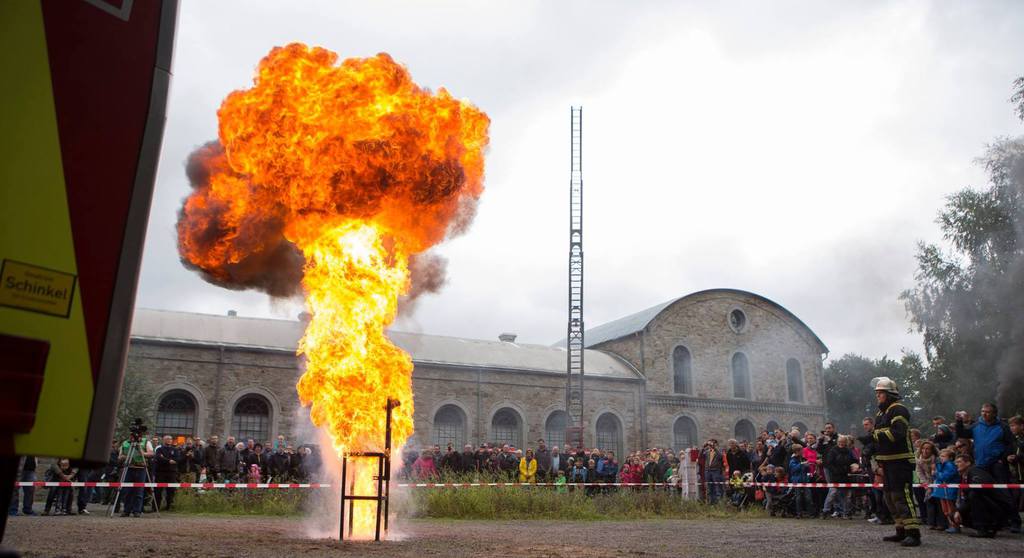 12.09.2015 | Am 06. September 2015 stellte sich die Freiwillige Feuerwehr Osnabrück-Schinkel im Rahmen der Jubiläumsausstellung zum 150 jährigen Bestehen der Feuerwehr Osnabrück auf dem Außengelände des Museum Industriekultur vor. Zwei Fettbrandexplosionen sowie zwei Löschübungen heizten dem zahlreichen und interessierten Publikum ordentlich ein.