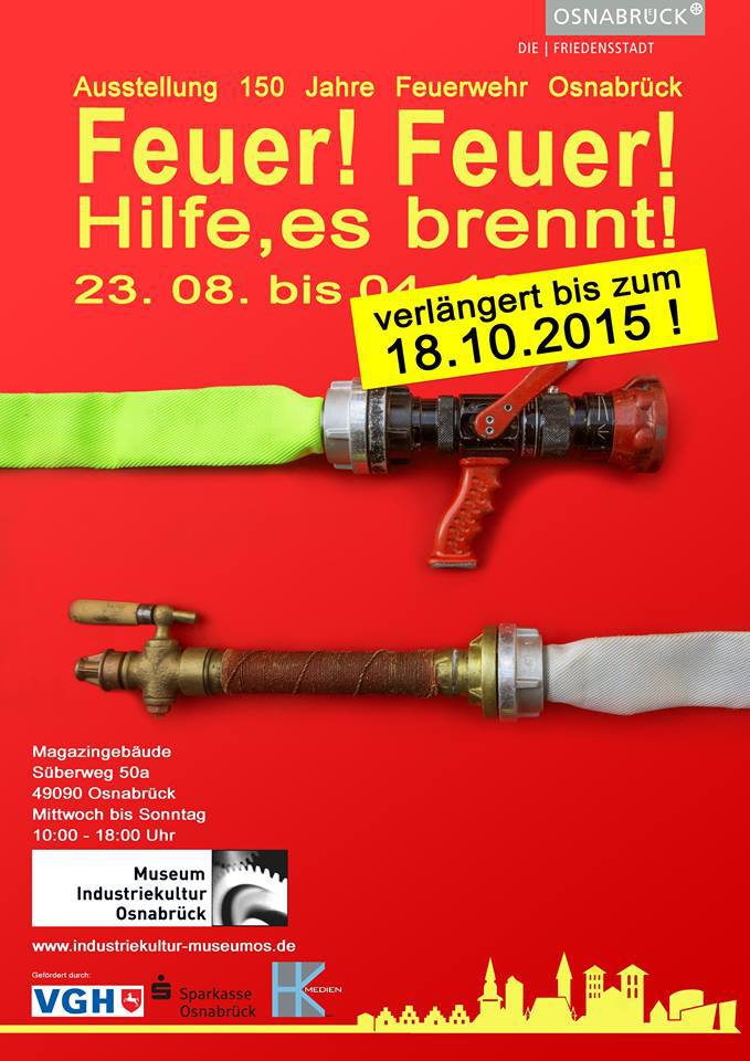 Vom 23.August 2015 bis 04.Oktober 2015 präsentiert das Museum Industriekultur Osnabrück und die Feuerwehr Osnabrück die Sonderausstellung „Feuer! Feuer! Hilfe, es brennt!“.