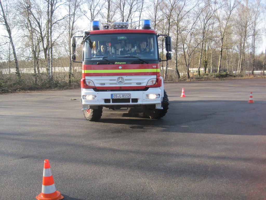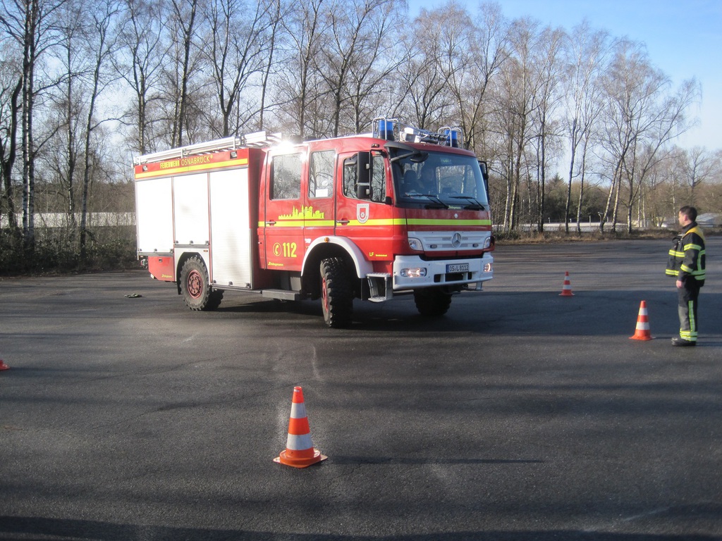 06.02.2017 | Der erste Samstagssonderdienst ( SASODI ) im neuen Jahr stand ganz im Zeichen eines Fahrertrainings. Dieses sollte dazu dienen, Fahrern der Klassen B und C, den sicheren Umgang mit unserem Mehrzweckfahrzeug ( MZF ) und dem Löschgruppenfahrzeug ( LF ) näher zu bringen. Dazu trafen wir uns mit insgesamt 11 Leuten am Feuerwehrhaus und begaben uns zur ehemaligen Kaserne am Limberg, zum dortigen Exerzierplatz. Dort bauten wir zunächst für jedes Fahrzeug ein Parcours aus Verkehrsleitkegeln auf. Dieser musste von den einzelnen Fahrern sowohl rückwärts als auch vorwärts möglichst zügig befahren werden. Nachdem sich die Fahrer hier bereits warm gefahren hatten, wurden die Verkehrsleitkegel zu einem Quadrat aufgestellt. Dieses war auf einer Seite am Rand auf Fahrzeugbreite geöffnet. Dort musste dann entweder vorwärts oder rückwärts eingefahren und gewendet werden. Die Hütchen durften hierbei nicht berührt werden, welches sich als sehr knifflig erwies. Danach trennten sich die Wege vom MZF und dem LF. Das MZF verblieb am Limberg und es wurden weitere Übungen, wie z.B. das Rückwärtsfahren mit Anhänger, durchgeführt. Mit dem LF begaben wir uns zum Piesberg, und trainierten das fahren in unwegsamen Gelände auf den Steigungen der ehemaligen Mülldeponie. Auch die Aussichtsplattform wurde nicht ausgelassen. Auf dem Rückweg zum Gerätehaus befuhren wir dann noch einige schmale und dicht beparkte Straßen im Stadtteil Sonnenhügel. Dieses gelang teilweise nur durch rangieren und mit Einweiser. Zurück an der Wache wurde dann noch alles gereinigt, so dass wir gegen 13:30 Uhr den SASODI beenden konnten.