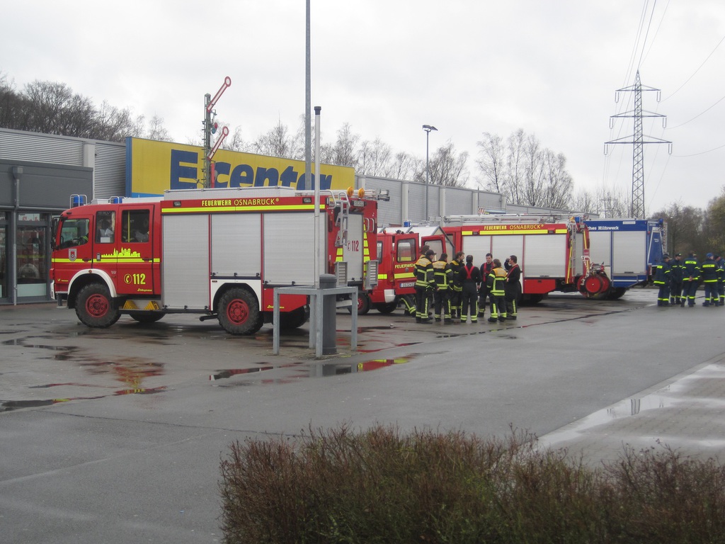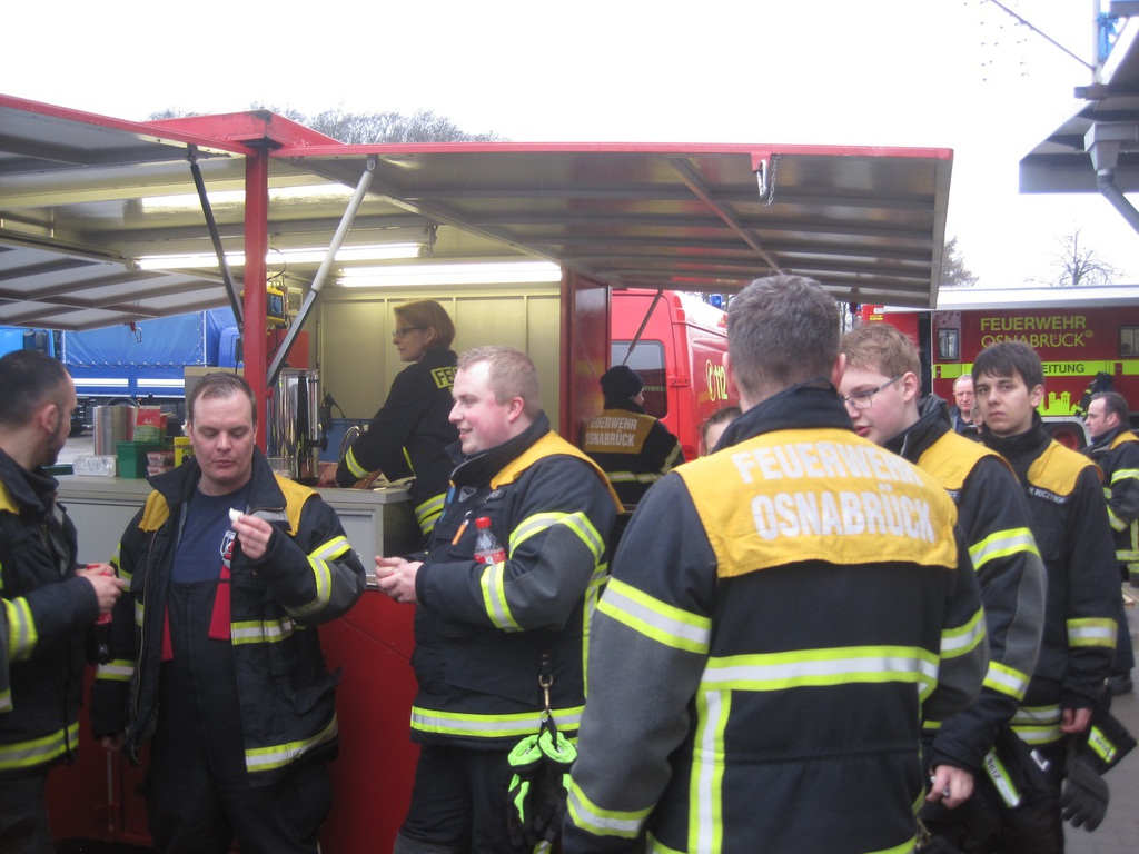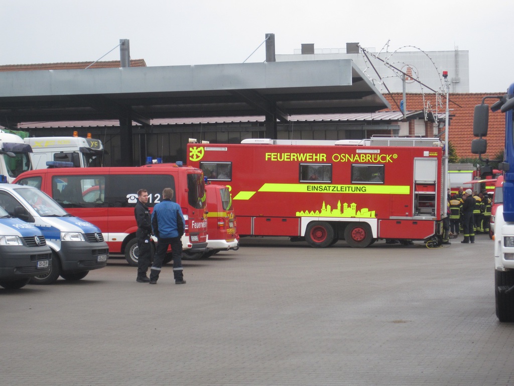 Währenddessen gingen auf dem Gelände der Halle Gartlage Rettungsdienst,THW und Feuerwehr in Bereitstellung. Diese wurden von dort nach und nach zum Stadion beordert. Die Alarmstufe wurde zwischenzeitlich von MANV 15 auf MANV 50 (Massenanfall von bis zu 50 Verletzten Personen) erhöht.