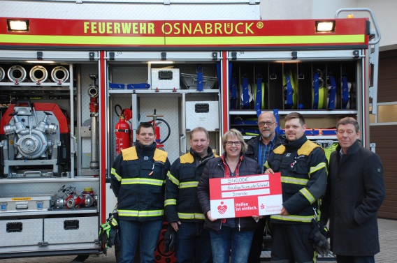 23.04.2017 | Am Mittwochabend, vor unserem Dienstbeginn, bekamen wir erfreulichen Besuch von der SPD- Ratsfraktion Osnabrück. Zu Gast waren Antje Schulte-Schoh, SPD-Bundestagskandidatin für Osnabrück, und Uwe Görtemöller, SPD-Bürgermeister der Stadt Osnabrück. Die SPD-Fraktion hatte traditionell beim jährlich stattfindenden Grünkohlessen Spenden eingesammelt, um diese dann an soziale, karitative Projekte in der Stadt Osnabrück weiterzuleiten. Dieses mal wurden die Spenden geteilt. Die eine Hälfte kam dem sozialen Projekt ,,Streuner“ der Wohnungslosenhilfe der Sozialen Dienste SKM zugute. Die andere Hälfte in Höhe von 540 € wurde an uns übergeben. Hiermit werden Begleithefte für Kinder zur Brandschutzerziehung, die zusammen mit einem Lehrfilm im letzten Jahr herausgebracht wurden, mitfinanziert. Die SPD-Fraktion bedankte sich auch auf diesem Wege, stellvertretend für alle ehrenamtlichen Feuerwehrleute in der Stadt Osnabrück, bei der FF Schinkel für ihren Dienst am Bürger. Auch wir sind sehr dankbar für die Spende und haben uns sehr über den Besuch der SPD-Ratsfraktion gefreut. Foto v.l.n.r.: Jan Sannemann (Ortsbrandmeister), Klaus Schneider (stellv. Ortsbrandmeister), Antje Schulte-Schoh, Karl Dieckmann (Mitinitiator des Brandschutzlehrfilms), Malte Schütte (Leiter Brandschutzerziehung), Uwe Görtemöller.