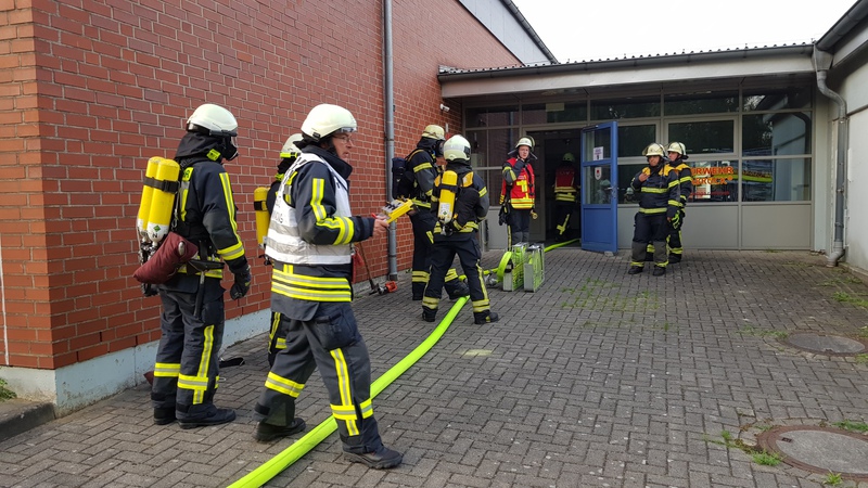 Durch die FF Schinkel ging ein Trupp unter PA über den Haupteingang zur Personenrettung/ Brandbekämpfung vor.