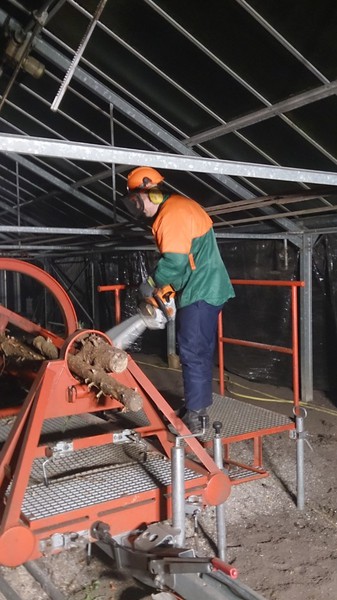 Wir sind dann zuständig, wenn durch diese Auswirkung Gefahr im Verzug ist. Aber auch wir müssen uns weiterbilden und mit dem Thema Sturmschäden beschäftigen. Unsere Kameraden sind an der Motorkettensäge ausgebildet und durchlaufen mehrere Modul-Ausbildungen. Hier üben wir im Jahre 2012 und 2013 an einem „Biege-Simulator“. In diesem können Baumstämme gebogen, verdreht und somit unter Spannung sowie unter Zug gebracht werden. Diese Umstände stellen immer ein großes Risiko besonders für unsere Einsatzkräfte da. Das Holz kann unerwartet und mit enormer Wucht brechen, splittern oder zurückschnellen. Das Gebiet um die Gefahrenstelle, dass für Passanten und Anwohner abgesperrt ist, ist für uns der Arbeitsplatz - wir müssen uns dieser Gefahr sogar bis auf wenige Zentimeter nähern und sie beseitigen. Hierfür üben wir regelmäßig mit den Sägen und beschäftigen uns auch mit den physikalischen Eigenschaften und Wirkungsweisen von Holz unter Spannung und Zug.