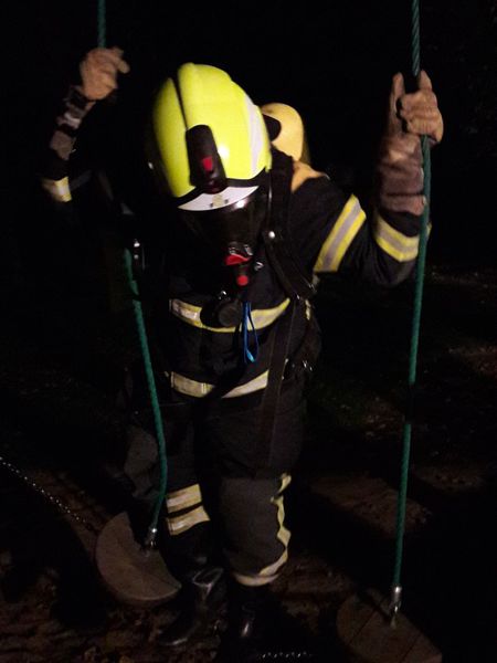 Diese Darbietung war jedoch nicht zur allgemeinen Volksbelustigung gedacht, sondern stellte für unsere Kameraden eine angenehme Abwechslung im Training mit dem Atemschutzgerät dar.