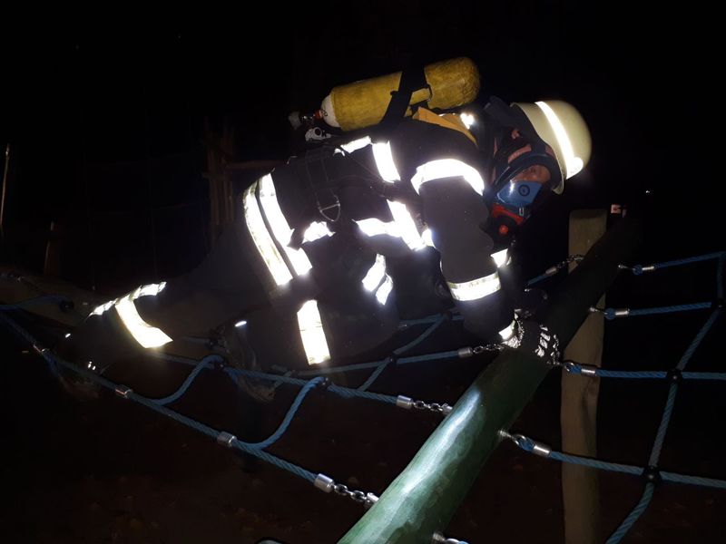 04.11.2017 | Vor einiger Zeit schauten die Anwohner eines beliebten Osnabrücker Frei- und Spaßbades sicherlich nicht schlecht, als gegen Abend drei Fahrzeuge der Feuerwehr auf das Gelände fuhren. Als dann auch noch sämtliche Feuerwehrkameraden in voller Einsatz- und Atemschutzmontur die Höhen des Kletterpacours erklommen, musste sicherlich so mancher Bürger schmunzeln.