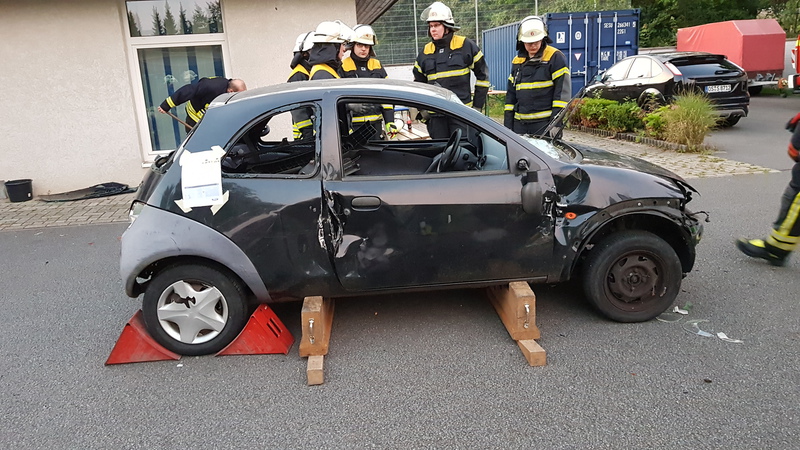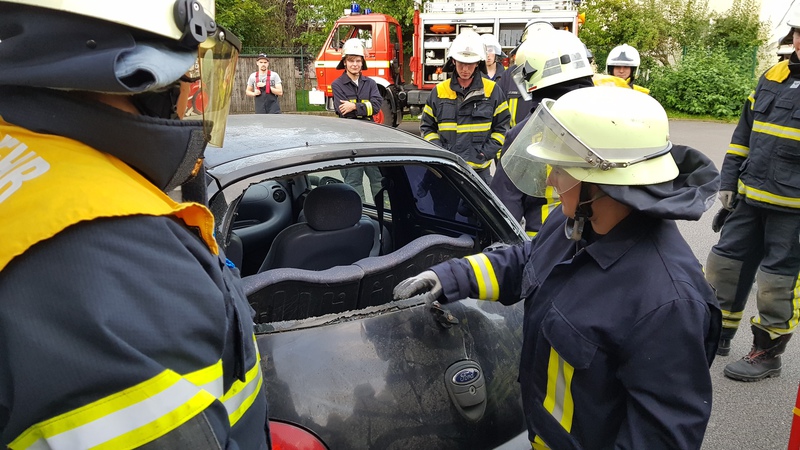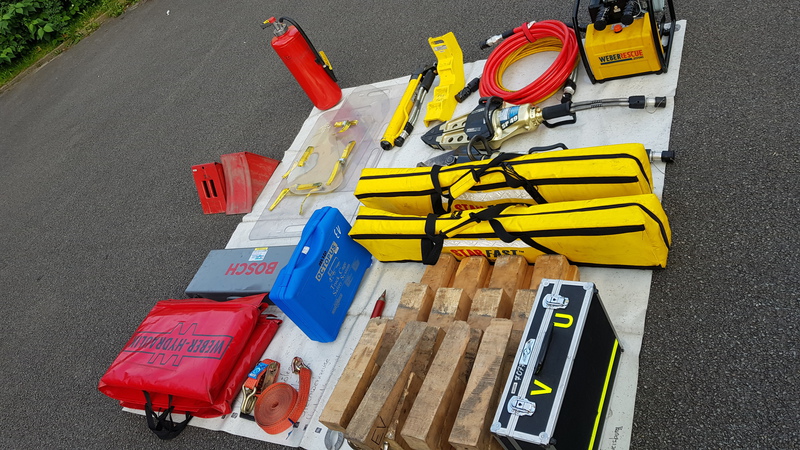 Anschließend wurden sämtliche Werkzeuge, die bei einem Verkehrsunfall mit Personenrettung nützlich sein können, aus TLF und LF genommen und an einem ausrangierten PKW getestet.