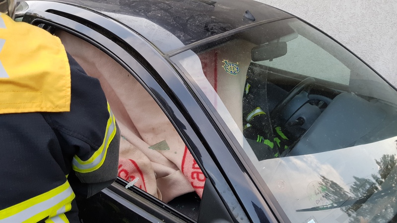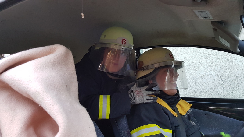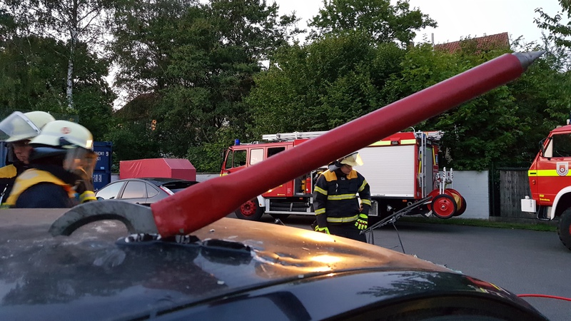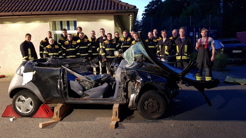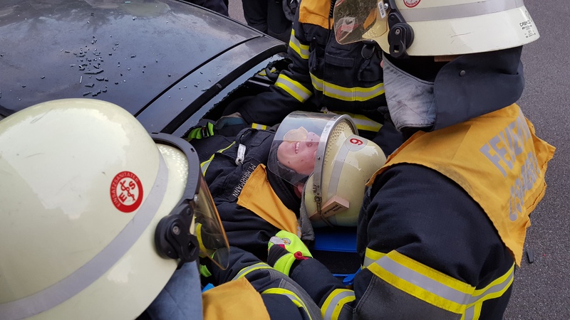 Hier kam auch das Spineboard zum Einsatz. Nachdem sich zwei Kameraden Zutritt zum Fahrzeug-Innenraum verschafft hatten, führten wir eine Crashrettung aus dem PKW durch.