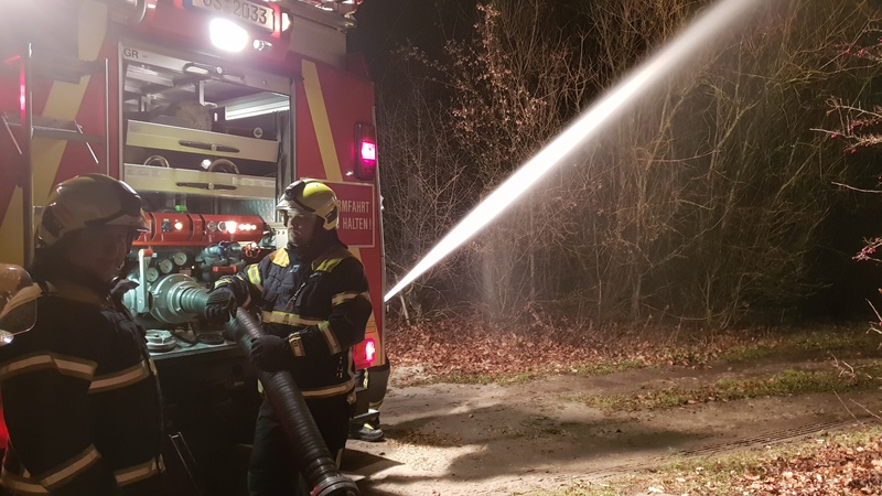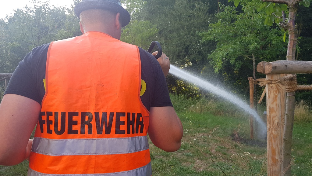 Anschließend kam auch noch ein mobiler Wasserwerfer zum Einsatz um ein brennendes Waldstück abzulöschen. Das wir bei solchen Übungen nicht vor reellen Einsätzen verschont werden, bekamen wir während unserer Lagebesprechung nach Übungsende zu spüren als wir Richtung Hasepark gerufen wurden. ( Einsatz Nr.11 )