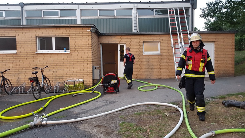19.08.2018 | Am Dienstabend des 15.8.18 zogen wir zusammen mit der FF Neustadt eine Übung an der Sporthalle des Rasensportvereins Osnabrück an der Mercatorstraße durch. Hier war es im Bereich der Umkleidekabinen und der Turnhalle zu einer Explosion gekommen, wodurch ein Feuer entstanden war, das auch in die Decke des Hallendaches zog. Der zuerst eintreffenden FF Neustadt wurde vom Hausmeister mitgeteilt das noch 3 Personen vermisst werden. Umgehend wurden vom TLF und LF Neustadt sowie vom wenig später eintreffenden TLF Schinkel mehrere Atemschutztrupps ins stark verrauchte Gebäude geschickt. Auf der Rückseite der Halle wurde zeitgleich die DLK Neustadt in Stellung gebracht, um von oben das Hallendach abzulöschen. Hierzu wurde vom LF und MZF Schinkel eine Wasserversorgung aufgebaut. Trotz eines Notfalls eines der Atemschutzleute, konnten alle Vermissten Personen relativ zügig gerettet und das Feuer gelöscht werden. Nachdem auch die DL oben alles m Griff hatte wurde das Gebäude noch entraucht und anschließend wieder zurückgebaut. Hinterher ging es dann zur FF Neustadt wo es noch eine