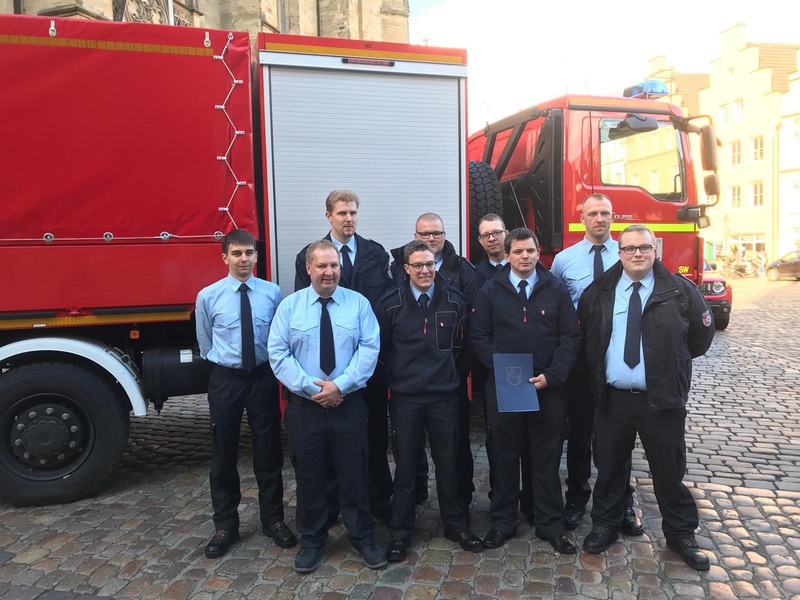 Befördert wurden im weiteren Verlauf Jonas E. zum Feuerwehrmann, Kai O. und Karsten K. zu Oberfeuerwehrmännern, Kristina B. u. Fabian O. zu